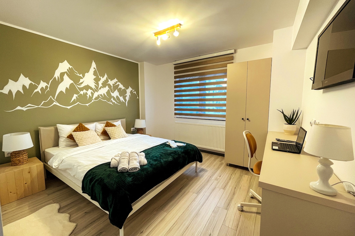 It's not only a space for rent, is our 2nd home away from the crowded city! We refurbished this 50sqm apartment with love for our own holidays and we thought why not share it when we're busy? It's 5 minutes walking to the railstation/center and at the base of mountain trails to Postavaru and Diham. It is perfect for 1 family with 2 kids or 2 couples. I'll be delighted to offer tips for trips and suggestions of activities and restaurants around.