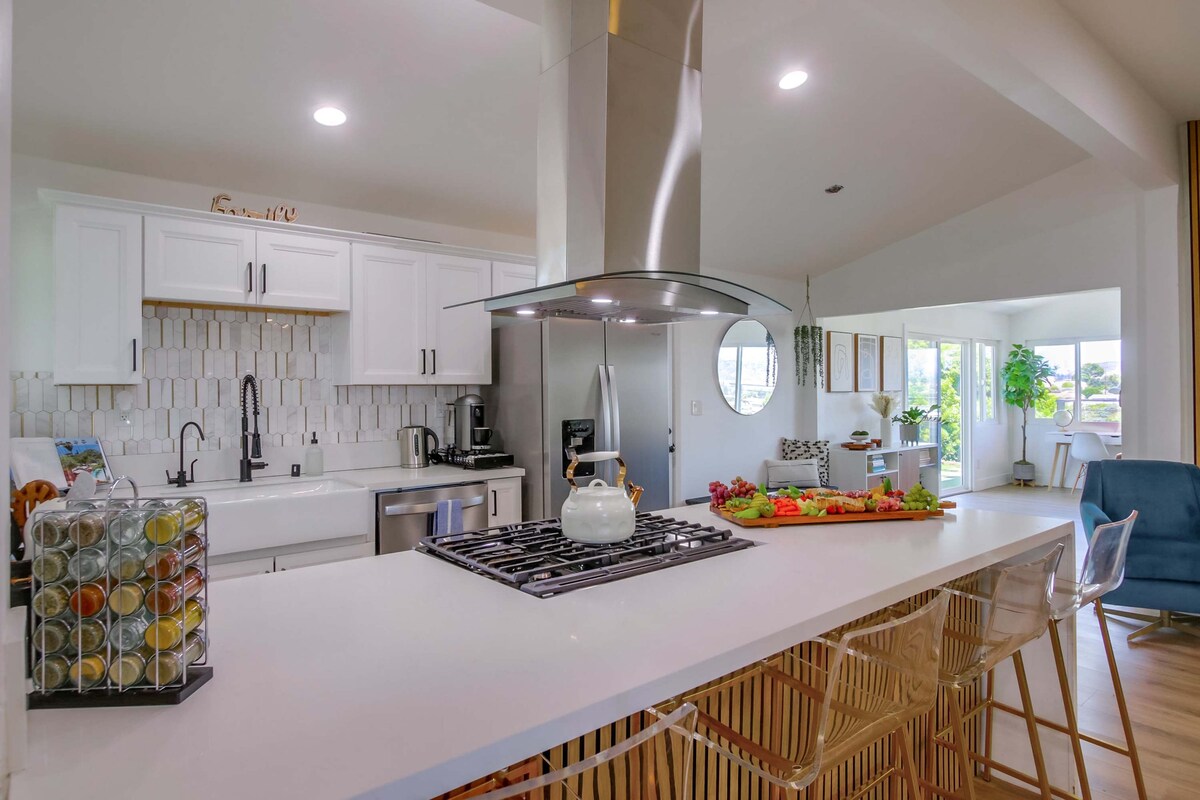 Selamat datang ke San Diego Sunrise Abode - percutian moden abad pertengahan yang tenang, baru diubahsuai di tengah-tengah San Diego! Dengan bilik yang luas, pelan lantai konsep terbuka yang diterangi cahaya semula jadi, dan oasis halaman belakang yang menakjubkan yang menawarkan pemandangan matahari terbit yang luar biasa, rumah yang jauh dari rumah ini menyediakan semua yang anda perlukan untuk percutian yang tidak dapat dilupakan. Hanya 15 minit atau kurang dari Gaslamp, pantai, Balboa Park, semua universiti utama, dan BANYAK LAGI... datang alami keindahan dan budaya San Diego yang sibuk dengan mudah.