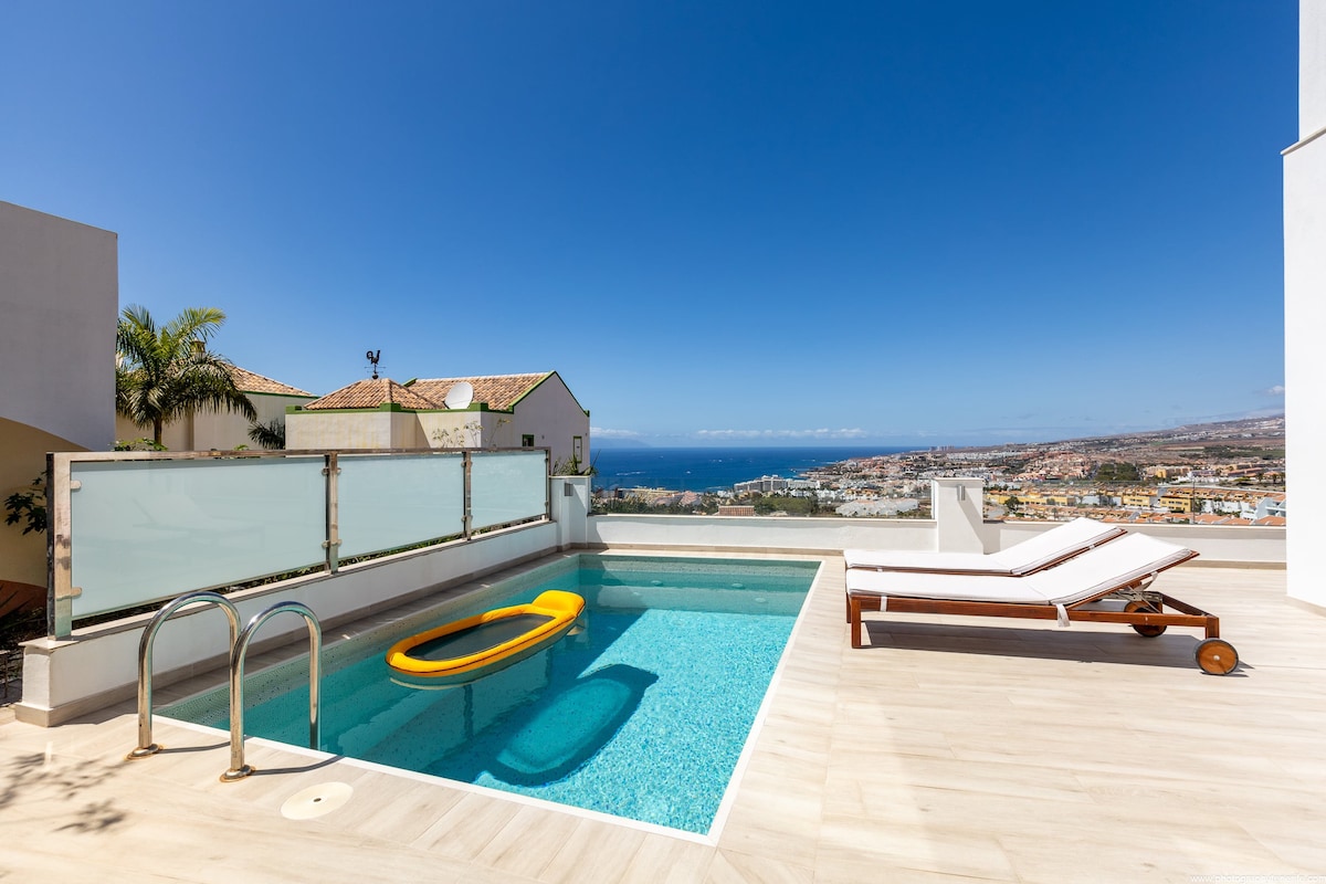 Vila separa berkembar moden kami dengan pemandangan pantai selatan Tenerife yang menakjubkan sesuai untuk mereka yang suka mengembara dengan bergaya. Anda boleh bersantai di teres yang luas yang menghadap ke laut atau bersantai di taman dengan kolam rendam persendirian, BBQ. Di sini anda dijamin akan menikmati percutian yang menakjubkan! Terletak hanya 5 minit dari Siam Park dan pusat membeli-belah menjadikannya sempurna untuk penginapan Keluarga. Tiada parti atau muzik kuat atau tetamu tambahan dibenarkan di penginapan ini.