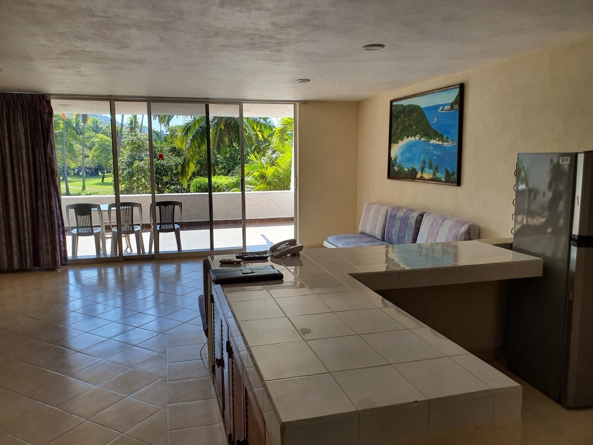 Tepi pantai yang cantik untuk berehat, makan dan tidur dengan selesa, apabila tidak menikmati pantai dan kolam renang yang cantik dan semua yang ditawarkan oleh Ixtapa. Kondominium ini terletak di tingkat 6 dan mempunyai tingkap gambar dinding ke dinding yang menakjubkan di ruang tamu yang meluncur terbuka ke gunung, padang golf dan pemandangan matahari terbit yang hebat. Pintu gelangsar patio membawa kepada pemandangan laut dan gunung yang menakjubkan dengan matahari terbenam yang menakjubkan di atas Lautan Pasifik.