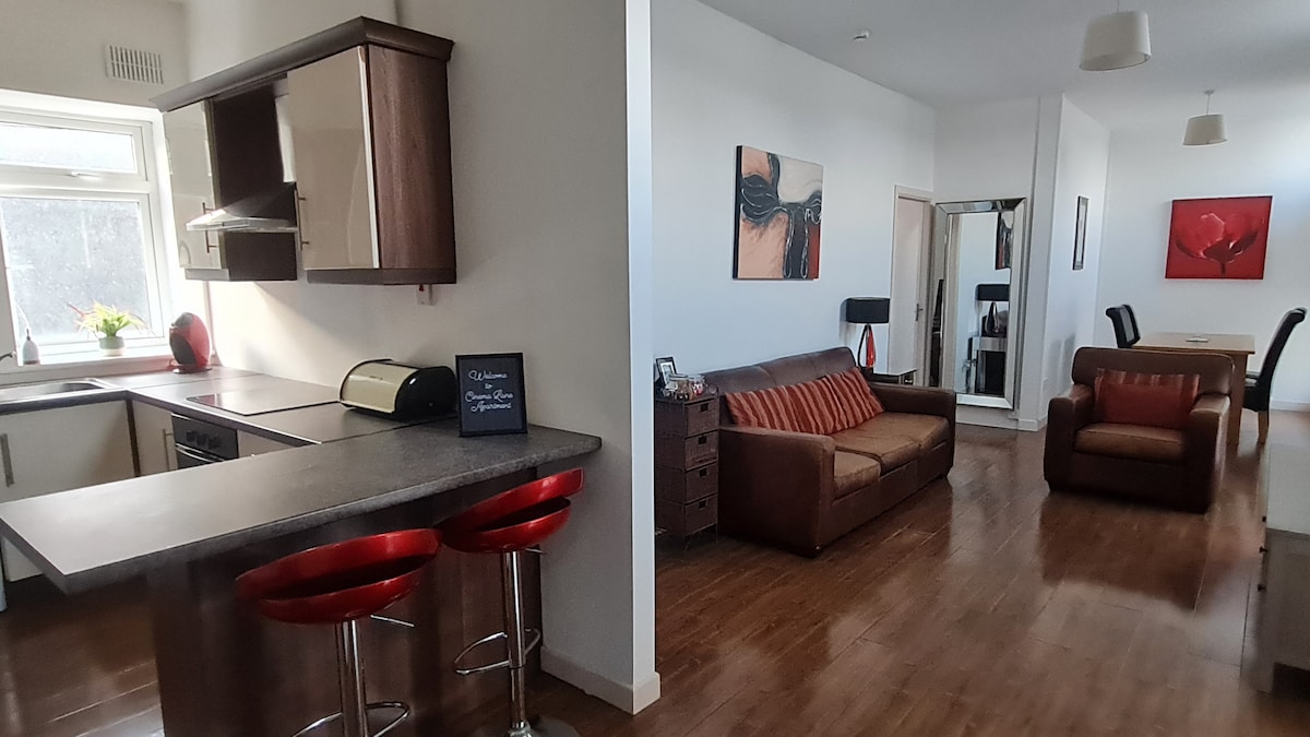 Apartmen yang cerah dan luas dengan pemandangan pelabuhan yang menakjubkan, betul-betul di tengah-tengah bandar Wexford. Terletak di blok apartmen yang tenang, ia adalah tempat yang sempurna untuk penginapan anda. Menampilkan dua bilik tidur berganda yang selesa dan dua bilik mandi, sesuai untuk keluarga, rakan atau pasangan. Hanya 2 minit berjalan kaki ke Jalan Utama yang meriah dengan pub, restoran, kafe dan kedai. Nikmati persiaran yang indah di sepanjang Quay, Wi-Fi pantas, dan dapur lengkap untuk penginapan yang santai.