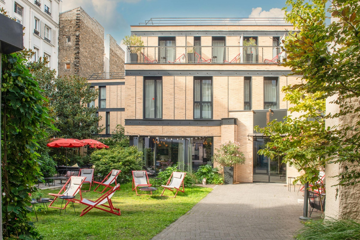 Selamat Datang di Hotel Olimpik! Kami mengalu-alukan anda dalam suasana yang santai dan meriah, hanya beberapa langkah dari tengah Boulogne-Billancourt dan 10 minit berjalan kaki dari Roland Garros dan Parc des Princes. Menginap di salah satu bilik kami dengan nada tanah liat mereka, di mana banyak sentuhan yang dipentaskan dengan teliti akan membawa anda menghayati dunia tenis. Patio kami yang teduh dengan air pancut yang cantik juga sedia membantu anda untuk berehat pada waktu siang.