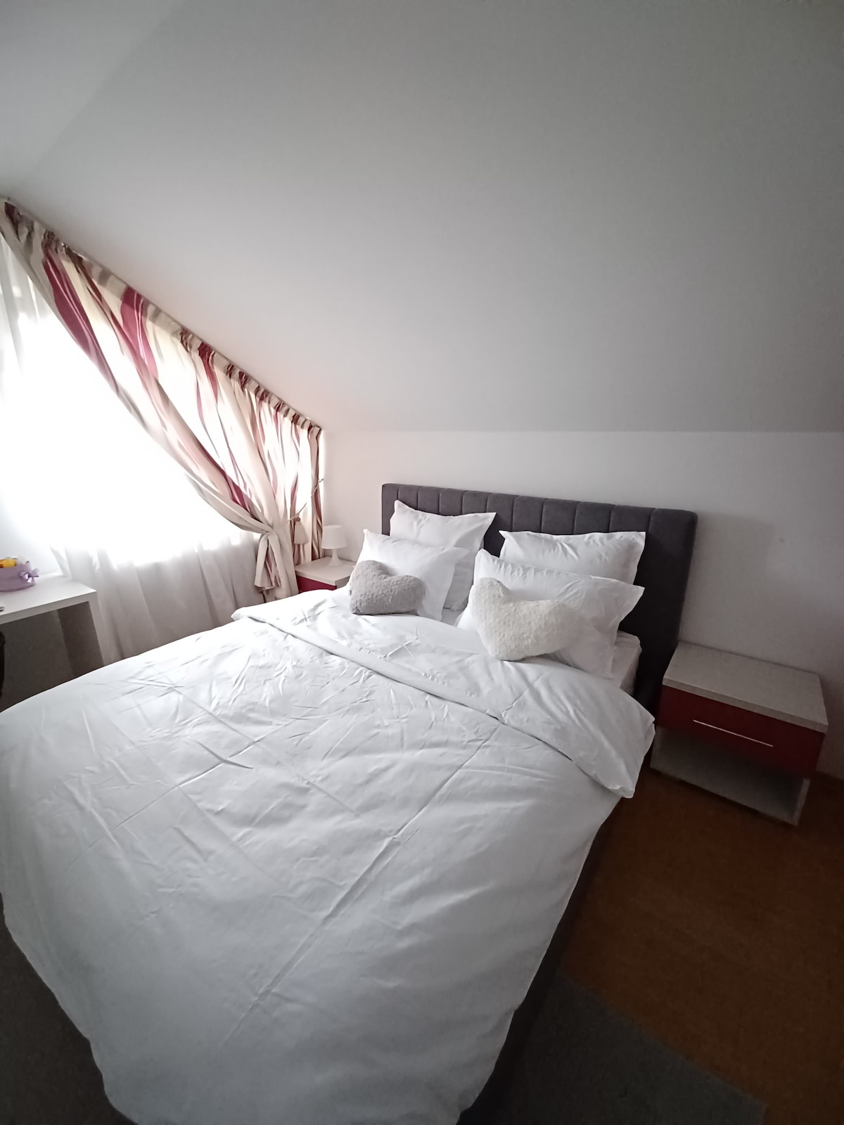 Seluruh apartmen tingkat bawah di vila yang indah dengan taman, di kawasan Bunloc Sacele, Brasov. Apartment ada pintu masuk berasingan dan terdiri daripada: - bilik tidur dengan katil perkahwinan dan bilik mandi en suite dengan tab mandi dan pancuran mandi - bilik tidur dengan katil perkahwinan - bilik mandi dengan pancuran mandi - ruang tamu dengan katil sofa yang boleh dipanjangkan - dapur terbuka, dilengkapi dengan ketuhar, hob elektrik, peti sejuk, mesin basuh pinggan mangkuk, mesin basuh. Anda akan menemui taman yang luas dan teres besar, katil berjemur, meja makan luaran, barbeku.