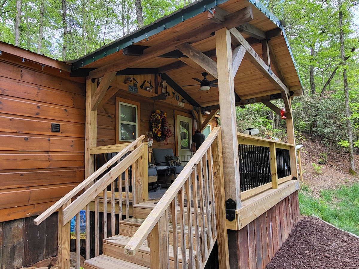 Pergi ke kabin 2 bilik tidur menawan kami yang terletak berhampiran Franklin, NC, di mana pemandangan gunung yang menakjubkan menanti. Sesuai untuk keluarga kecil yang mencari pengembaraan atau pasangan yang ingin percutian romantik, rumah kami mempunyai dek yang direka untuk menikmati pemandangan yang memukau. Bayangkan anda berehat di buaian beranda depan, dikelilingi oleh alam semula jadi. Dengan pusat bandar Franklin hanya 15 minit memandu, Bryson City dalam 20 minit, dan Cherokee dalam 40 minit, pilihan anda untuk penerokaan tidak terbatas. Tempah percutian gunung yang tenang hari ini!