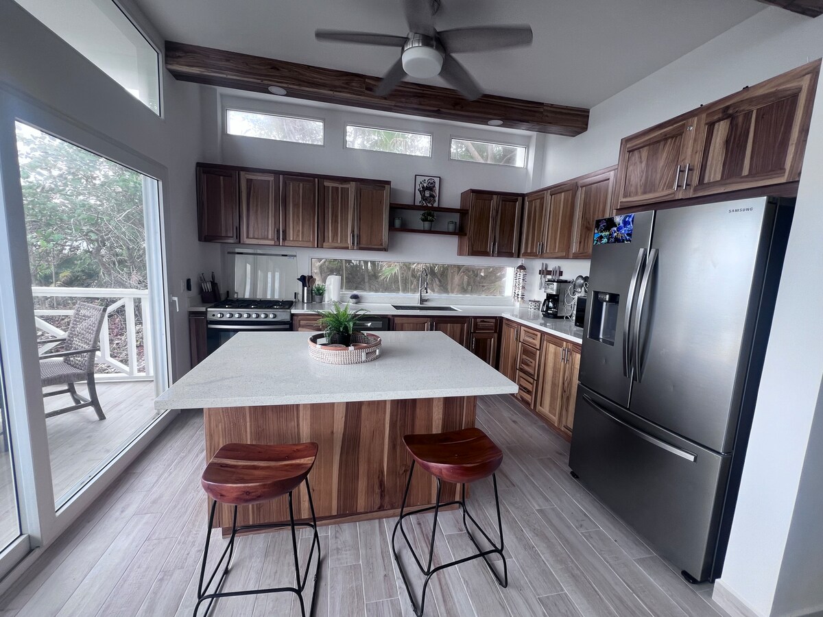 Casa 2 terletak di tingkat atas rumah, menawarkan percutian yang tenang dan peribadi dengan pemandangan yang menakjubkan dan angin yang menyegarkan. Terletak di atas puncak pokok, anda boleh berehat sambil menonton burung macaw, burung kakak tua dan burung madu dari balkoni anda. Terletak hanya 5 minit berjalan kaki dari pusat West End, anda dekat dengan tempat menyelam, bersnorkel, berenang, dan restoran. Selepas seharian pengembaraan, berehat di kolam terjun berkongsi—hanya dikongsi dengan satu apartmen lain—menjadikannya tempat yang tenang dan damai untuk berehat.