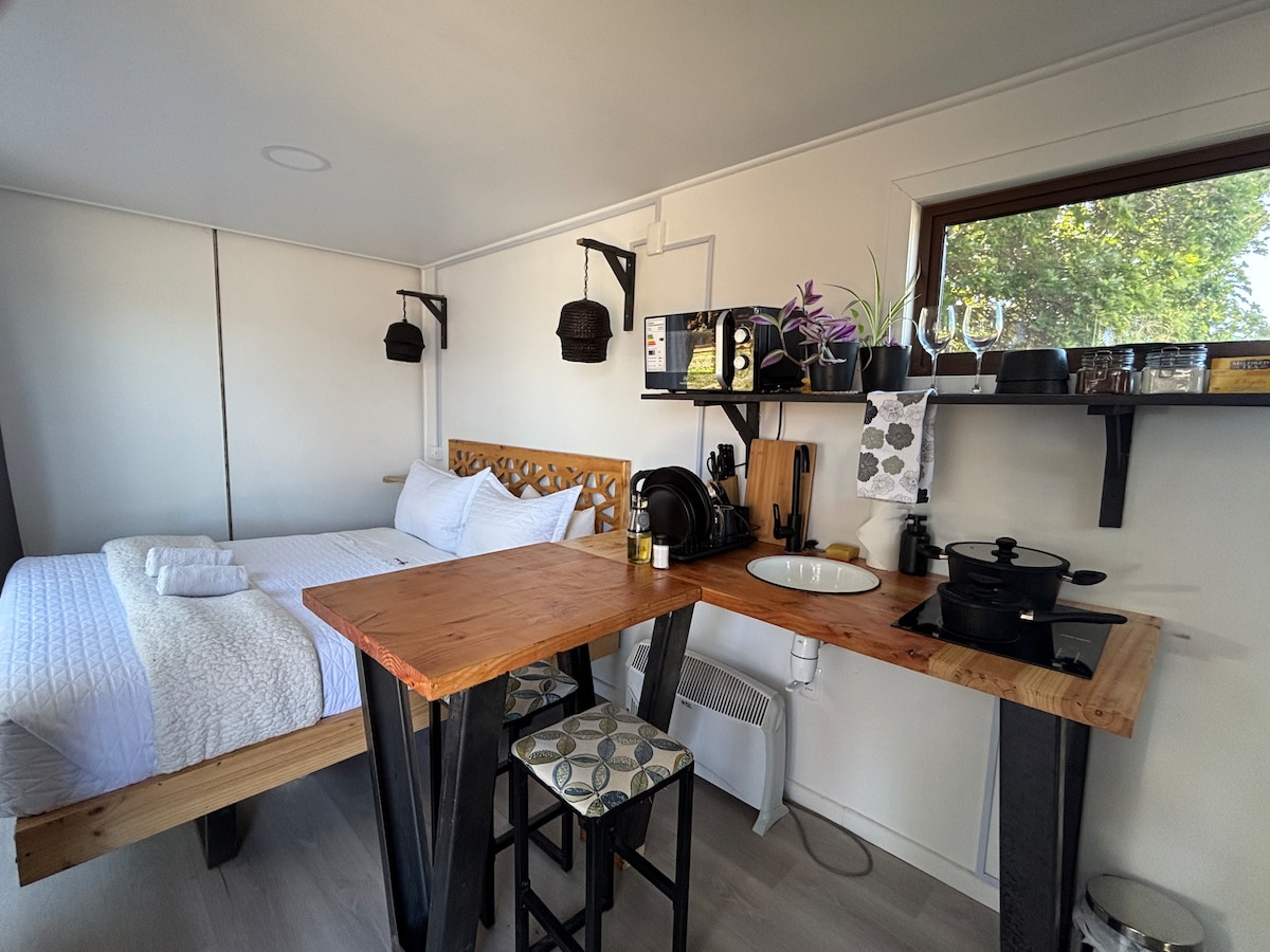 Casa Container terletak 5 minit dari Plaza de Coyhaique terletak di tebing Sungai Simpson di mana anda akan mempunyai privasi yang anda perlukan untuk penginapan impian Anda boleh ke sana dari Coyhaique dengan kereta/ Uber (aplikasi $ 2,000) kotej ini terletak di plot 5000 m2. Ia mempunyai WiFi (50 mbps) yang sesuai untuk panggilan video, dan anda juga boleh menikmati aplikasi untuk menonton filem atau siri di smartv. Dapur mempunyai semua yang anda perlukan, serta tuala mandi dan cadar