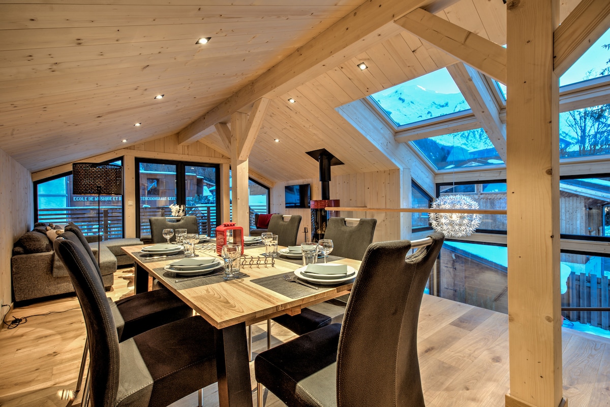 80m2 di pusat bandar Chamonix, pemandangan panorama M-B, taman.