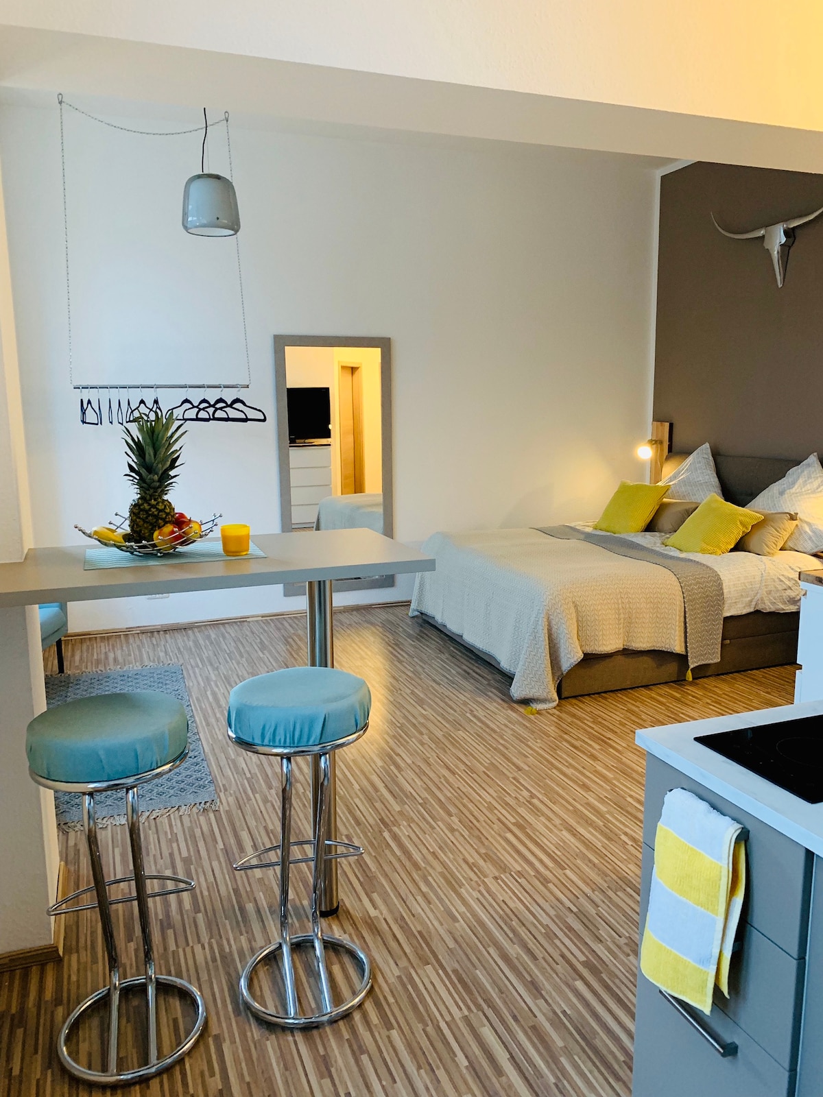 Cuti, pameran perdagangan, perjalanan perniagaan, sesi penggambaran kecil (hanya atas permintaan), percutian hujung minggu... Adakah anda suka yang lain, istimewa? Kemudian kami berada di halaman yang sama. Degenfabrik yang telah diubahsuai sepenuhnya menawarkan suasana yang menjadikan masa berjalan lebih perlahan. Tempat letak kereta tersedia, 10 hingga 15 menit ke bandar, pelbagai restoran dan kedai, sambungan kereta api serantau. Kemudahan sukan berada di belakang rumah. Di dalam bangunan yang sama kami mengendalikan galeri seni yang dialu-alukan untuk melawat.