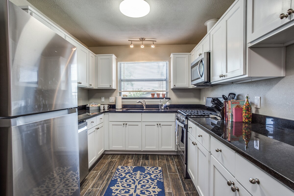 Bersantai di bawah dusun pokok pecan di tempat persembunyian yang damai ini berhampiran I-20 dan I-35. Pandu 15 menit ke pusat bandar atau barat 7, 10 menit ke Magnolia Ave, dan 20 menit ke Stockyards. Direka dan diubahsuai secara profesional, kediaman ini termasuk dapur yang besar dan lengkap dengan paip air bertapis osmosis songsang dan bar teh dan kopi percuma. Akhiri hari anda dengan unggun api dan s'mores di bawah lampu tali dan pokok anggur berbunga di halaman belakang.