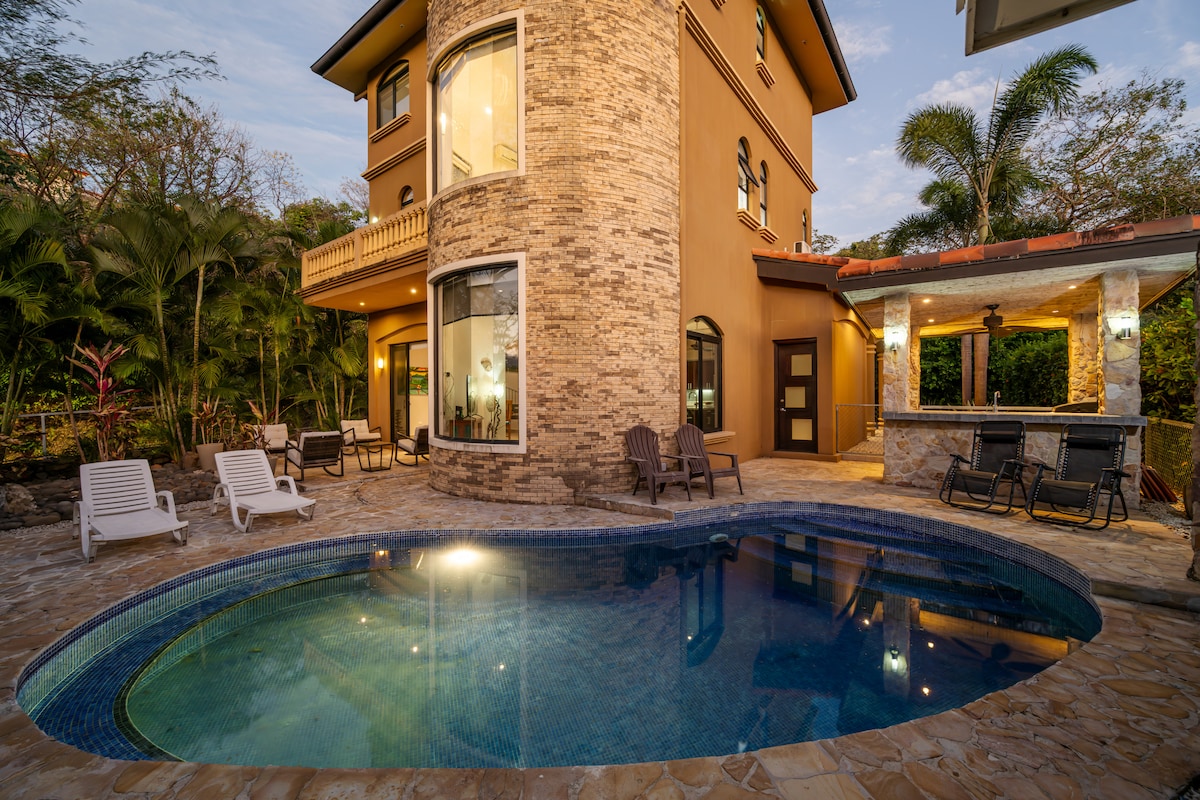 Selamat datang ke pengembaraan Costa Rica anda! Tiga bilik tidur dan dua bilik mandi yang cerah dan ceria dengan kolam renang persendirian baharu dengan kedalaman 2 kaki untuk kanak-kanak dan separuh lagi kolam renang, kedalaman 5 kaki untuk orang dewasa yang terletak di resort Villa Sol. Ruang tamu seluas 1600 kaki persegi dengan beranda hadapan yang dilitupi. Akses kepada semua kemudahan resort tanpa caj tambahan. Pakej serba lengkap tersedia untuk dibeli semasa mendaftar masuk jika diingini. Akses pantai (8 minit berjalan kaki) dan hanya 20 minit dari lapangan terbang Liberia!
