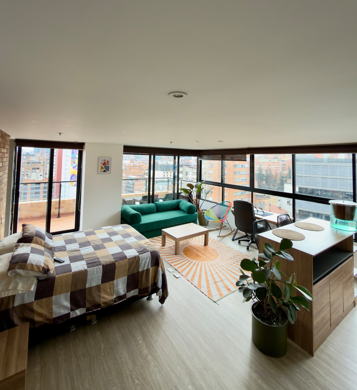 Bersantai di loteng moden dan selesa ini yang terletak di Usaquén yang menawan, salah satu kawasan Bogotá yang paling meriah. Dalam masa beberapa minit berjalan kaki, anda akan menemui pelbagai jenis restoran gourmet, kafe dan butik unik. Bilik ini menampilkan katil queen, bilik mandi peribadi, Wi-Fi, dan ruang kerja yang sesuai untuk pengembara perniagaan. Sesuai untuk pasangan atau pengembara solo yang ingin meneroka kehidupan Bogotá yang tulen dalam persekitaran yang selamat dan canggih. Uroom sangat menarik dalam perinciannya!
