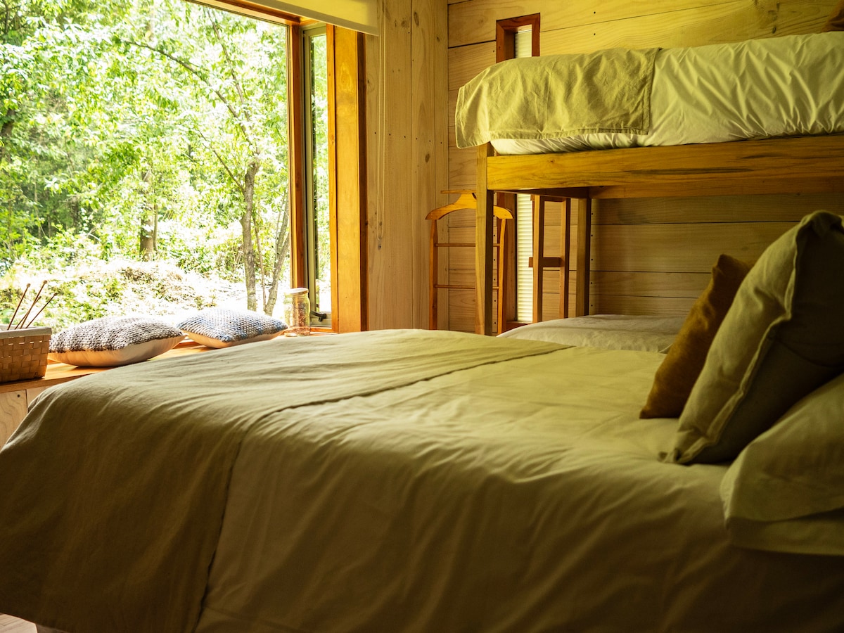 "Kabin desa untuk 2 orang di Malalcahuello, dikelilingi oleh hutan asli dan dengan akses terus ke sungai. Bersantai di tab mandi persendirian kami (tambahan, tiada had masa) dan nikmati sarapan yang disertakan. Beberapa minit dari Corralco, mata air panas, denai dan gunung berapi. Sesuai untuk bersantai, berhubung semula dan mengalami pengembaraan🍃.
