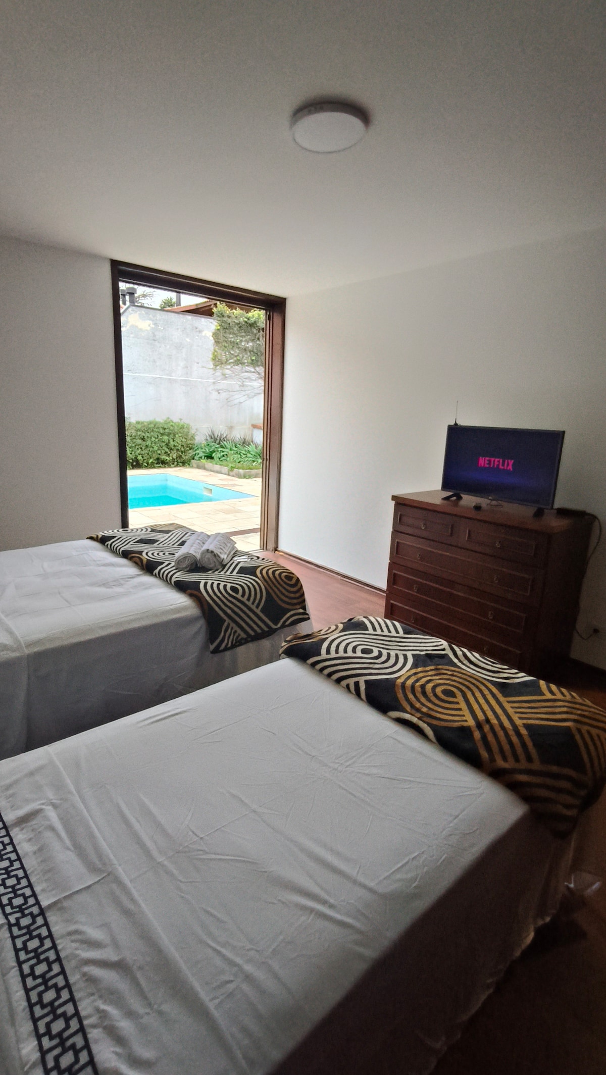 Espaço construído no segundo piso para nossos filhos que mudaram para os EUA e agora queremos receber famílias que valorizam aconchego. Com dois quartos, sala de estar, cozinha equipada em conceito aberto, um banheiro completo com chuveiro a gás, e um lavabo. Churrasqueira no térreo. Cercada de bosque e pomar com árvores frutiferas, pequenos animais silvestres, pássaros e borboletas. Espaço para dois automóveis. Estamos a 2 km do Parque Barigui, 2 km da BR 277 e a 6 km do centro de Curitiba.