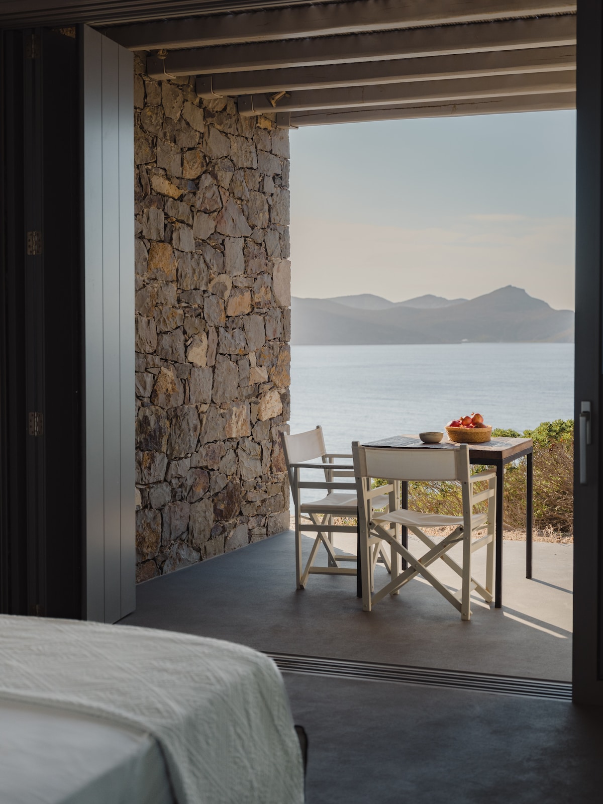Vila mewah eko di sembilan ekar tanah yang belum tercemar, penuh dengan pokok zaitun, lavender dan thyme. Dibina di atas cerun betul-betul di atas laut, vila ini mempunyai pemandangan terus matahari terbenam dan akses kepada perkampungan nelayan kecil Skinopi dan pantai kecilnya.