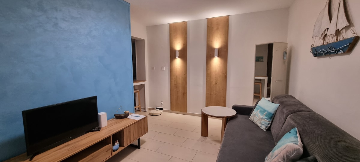 Apartmen selesa untuk dua orang dengan pemandangan laut.