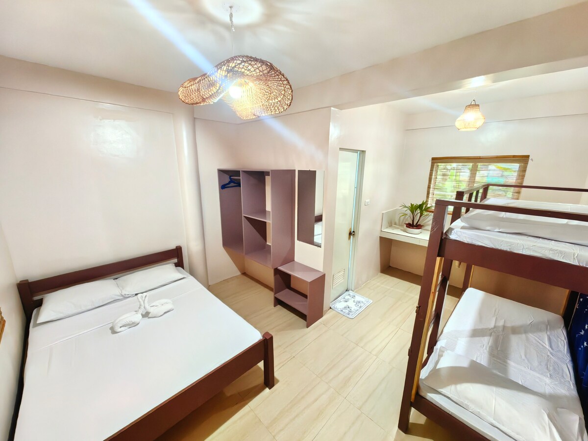 Sesuai untuk 3 tetamu. 1 bilik tidur dengan katil kelamin, katil bujang, dan katil lantai tambahan jika diminta. Berhawa dingin. Bilik mandi bersih. WiFi percuma. Dapur memasak tersedia dengan bayaran tambahan. 3-5 minit memandu ke pantai, Sewaan motosikal tersedia di kawasan ini Berhampiran: Pelabuhan Santa Fe – 450m (2 minit memandu) Pantai Kota – 1.2km (5 minit memandu) Gua Ogtong – 2.5km (7 minit memandu) Paradise Beach – 3.8km (12 minit memandu) Lapangan Terbang – 2km (6 minit memandu) Pasar – 700m (3 minit memandu)