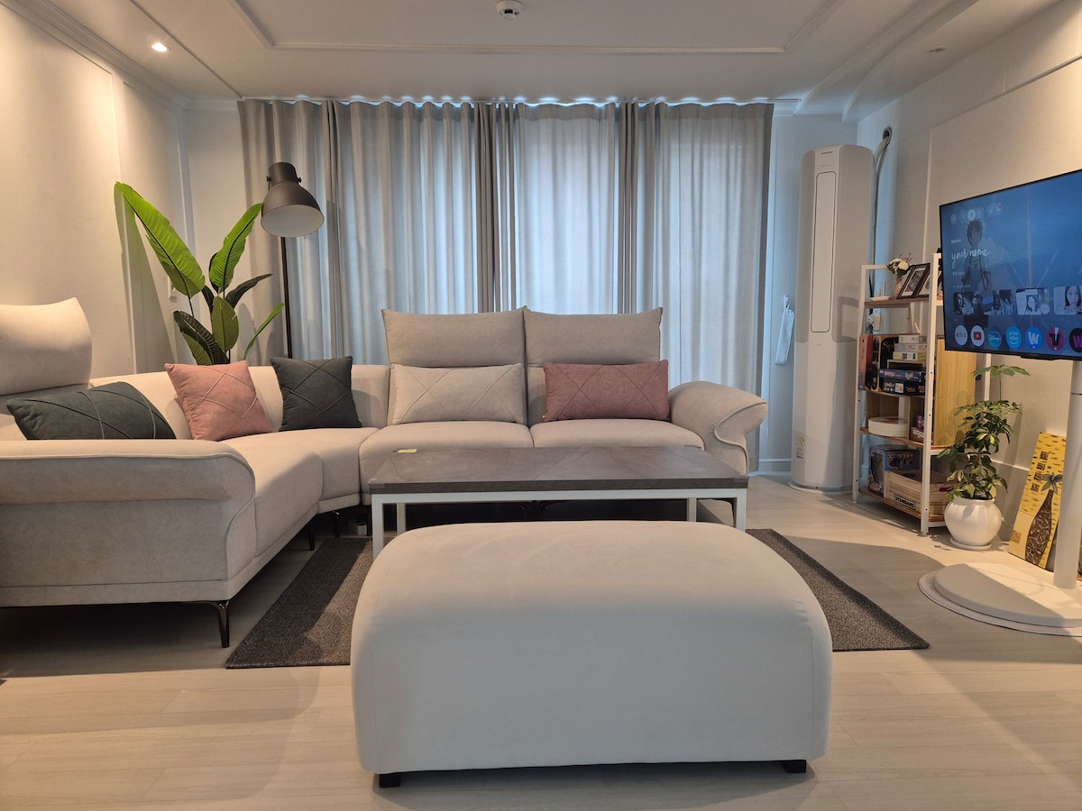 ❤️Sila baca dan gunakannya.❤️ 📌Haiwan peliharaan tidak dibenarkan! Pengusiran paksa selepas penalti! 📌Kami menjalankan acara daftar keluar lewat pada 12 tengah hari:) Anda mesti memohon acara ulasan terlebih dahulu. Adalah wajib untuk menulis ulasan pada hari berlepas:) Tempat letak kereta percuma tersedia dalam jarak 30 saat 📌berjalan kaki dari penginapan, jadi sila beritahu kami terlebih dahulu dan kami akan membantu anda dengan arahan tempat letak kereta. - Ia berhampiran dengan kawasan stesen super Jungang-ro, Dongseong-ro, dan Gyo-dong, tempat paling panas di Daegu baru-baru ini. - Kami memastikan peralatan tempat tidur bersih dengan menukar dan mengkuarantin setiap hari, supaya anda boleh menempah dengan yakin:) - Anda boleh menggunakan Netflex, Disney Plus, TV, Coupang Play secara percuma. - Kami memastikan ia bersih dan kemas, supaya anda boleh berehat dengan selesa.