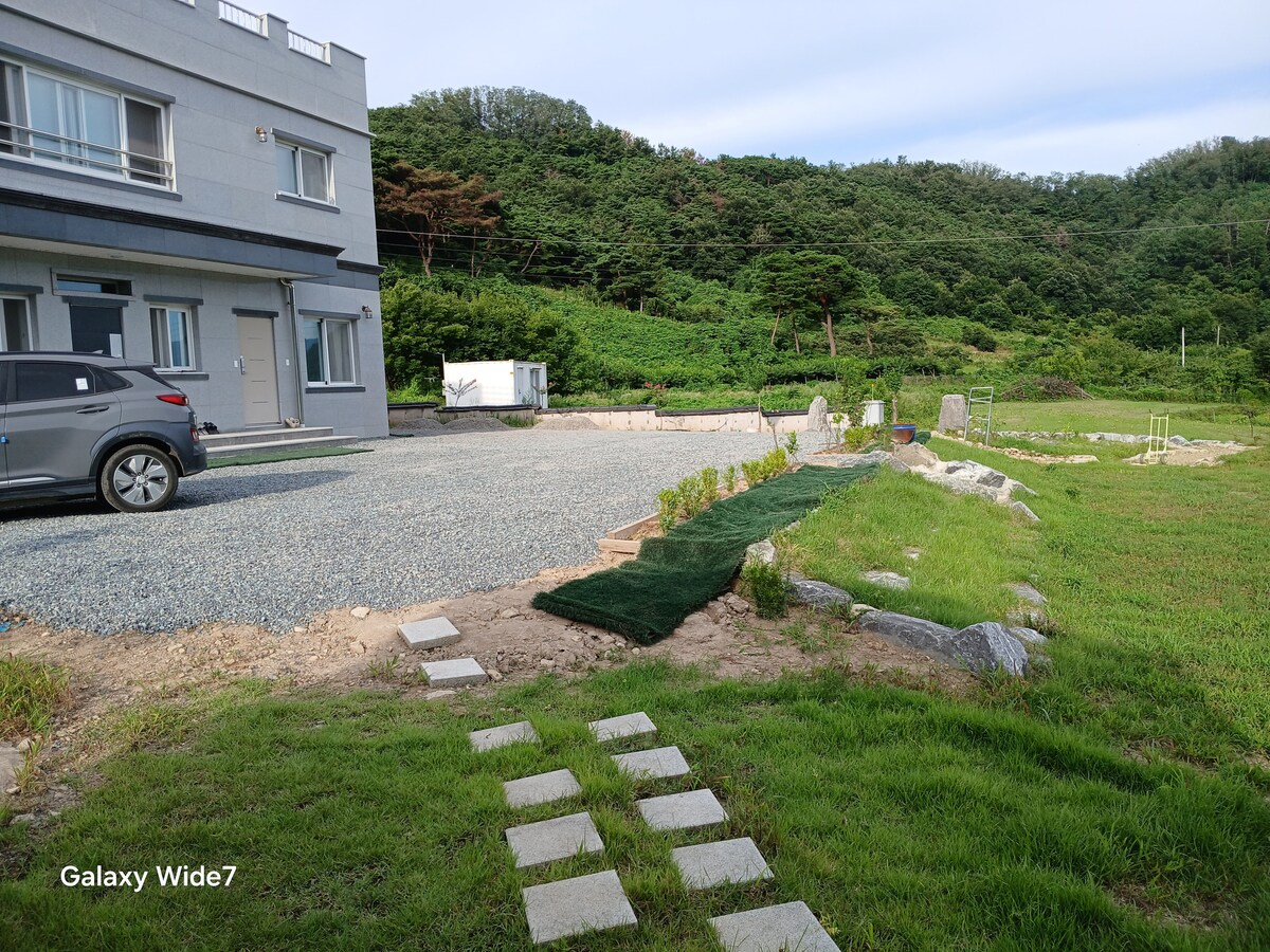 Rumah yang luas ini sesuai untuk seluruh keluarga. Bagaimana dengan takungan yang luas di hadapan, denai hutan pain di belakang, dan rumah tumpangan romantik dengan pemandangan indah di halaman yang luas. Dan pengangkutannya baik, dan ia rendah kerana ia adalah bangunan baru yang terletak 40 minit dari Daegu.