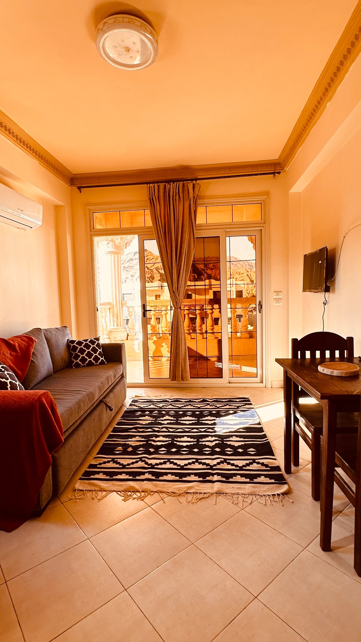 Apartmen peribadi anda dengan bumbung 30m² adalah suasananya— nikmati kopi pagi anda, bersenam, bersantai menikmati matahari terbenam, atau saat-saat senyap yang indah sambil menikmati pemandangan Dahab. Di dalam, fikirkan warna-warna berani, sudut bacaan, tidur siang di sofa sambil menikmati angin laut, sesi memasak dan bilik tidur selesa yang diilhamkan oleh orang Badui. Pantai dan kafe terbaik? Hanya 3 minit dari sini. Keperluan asas disediakan untuk menjadikannya siap sedia untuk hujung minggu atau sebulan. Dan sudah tentu, hospitaliti House of Riche menyokong anda dalam setiap langkah.
