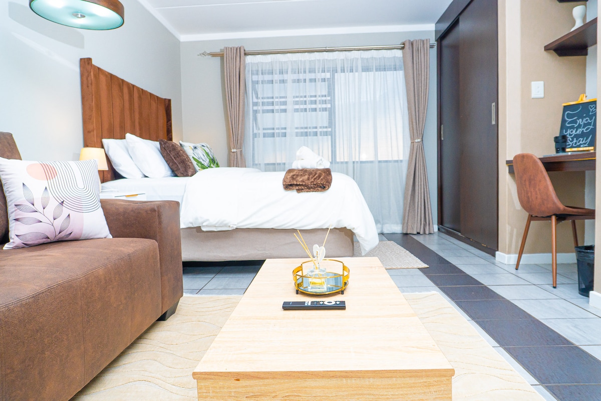 Selepas hari yang panjang dan sibuk, tanggalkan kasut anda dan pakai selipar mewah percuma kami. Dengan setiap perincian yang dicipta untuk ketenangan anda, tenggelamkan diri anda dalam pelukan lembut katil siang, yang seolah-olah mengalu-alukan anda dengan tangan terbuka. Luangkan sedikit masa untuk memanjakan diri: pilih daripada mana-mana perkhidmatan penstriman TV premium kami, dan nikmati dunia yang anda suka. Tuangkan koktel sejuk dan nikmati warna keemasan matahari terbenam yang melukis langit di atas Steyn City.