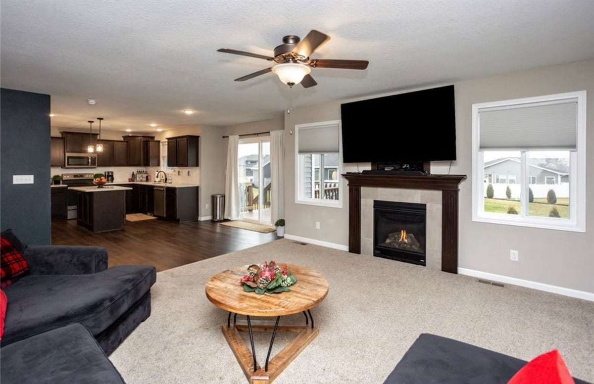 Rumah kami yang luas, sesuai untuk kumpulan sehingga 10 orang, menampilkan dapur chef, pejabat yang tenang dengan internet pantas, katil yang selesa & lima bilik mandi. Nikmati keseronokan luar di halaman belakang peribadi kami yang berhutan, makan di dek, baling bola sepak dengan kanak-kanak, dan duduk di sekitar lubang api membuat s'mores. Walnut Creek Regional Park and Bike Trail .8 mi., Starbucks/Hy-Vee Fast&Fresh 1.2 batu., Sasaran (kedai runcit) 3.1 batu., Living History Farms 4.6 batu., Vibrant Music Hall - 6.7 batu., Wells Fargo Arena Center 14.5 batu.