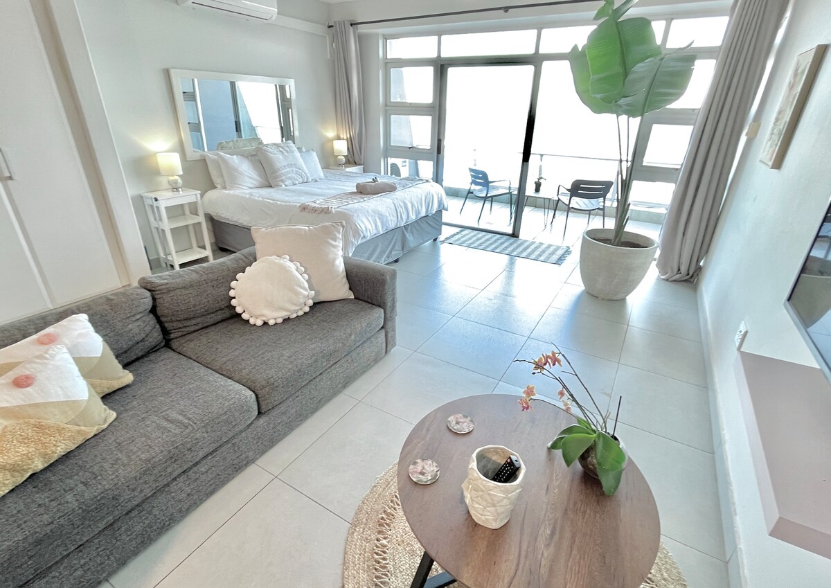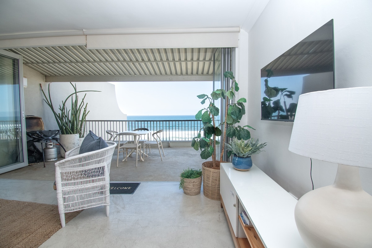 Luxury 1 Bedroom 1 bathroom Self Catering Apartment right on the Beach with stunning views, located on Lagoon Drive. 1 tempat letak kereta pelabuhan kereta, 2 anak tangga membawa anda pemandangan yang menakjubkan dari no 24. Ruang tamu ada aircon Katil bersaiz king. Bilik mandi ensuite dengan pancuran mandian. Duduk di balkoni di bawah awing mengambil pemandangan sambil menikmati braai. Wifi. DSTV/Netflix sila gunakan butiran log masuk anda sendiri.