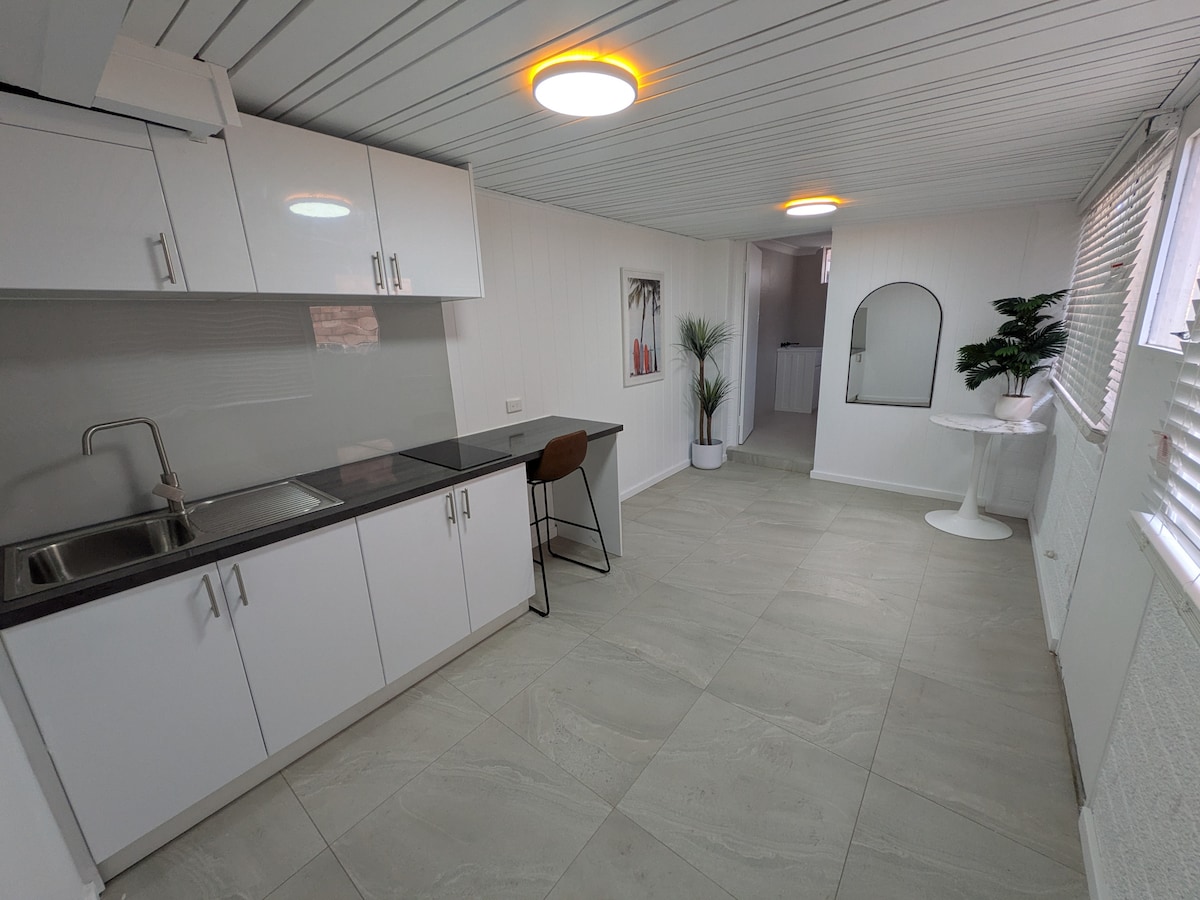 Percutian tepi pantai yang selesa. Apartmen studio kami yang baru diperbaharui hanya beberapa langkah dari laut. Dihiasi dengan gaya pantai yang segar, percutian yang menarik ini sesuai untuk pasangan atau singgah dalam perjalanan anda melalui Barat Daya. Dengan pemandangan laut dari semua tingkap, anda boleh berehat di bangku Marri dengan minuman dan melihat matahari terbenam di atas lautan. Nikmati sarapan percuma dengan bijirin, roti dan telur. Tuala pantai disediakan, dan anda akan menemui BBQ dan tempat duduk yang selesa di halaman.