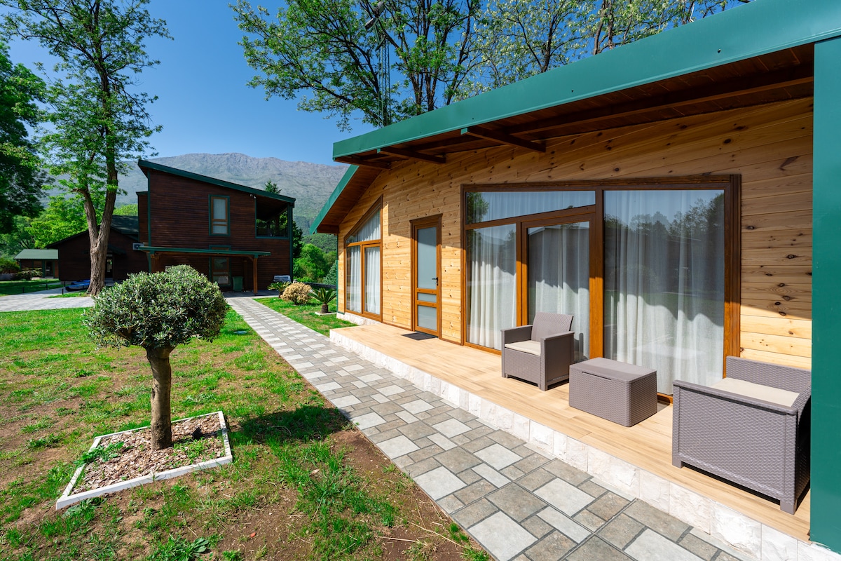 Rumah terletak 18km dari ibu kota, Podgorica(28km dari lapangan terbang) dan hanya 2km dari bandar Danilovgrad. Rumah ini benar-benar selesa dengan ruang tamu yang besar, dapur terbuka, bilik mandi dan bilik berasingan dengan sauna, jakuzi dan peralatan kecergasan asas di tingkat satu dan 3 bilik tidur dan tandas di tingkat dua. Di seluruh sisi penginapan terdapat sungai besar dengan pemandangan yang menakjubkan dan tempat untuk berehat atau makan. Kolam renang dan barbeku hanyalah beberapa perkara yang anda boleh nikmati di penginapan ini.