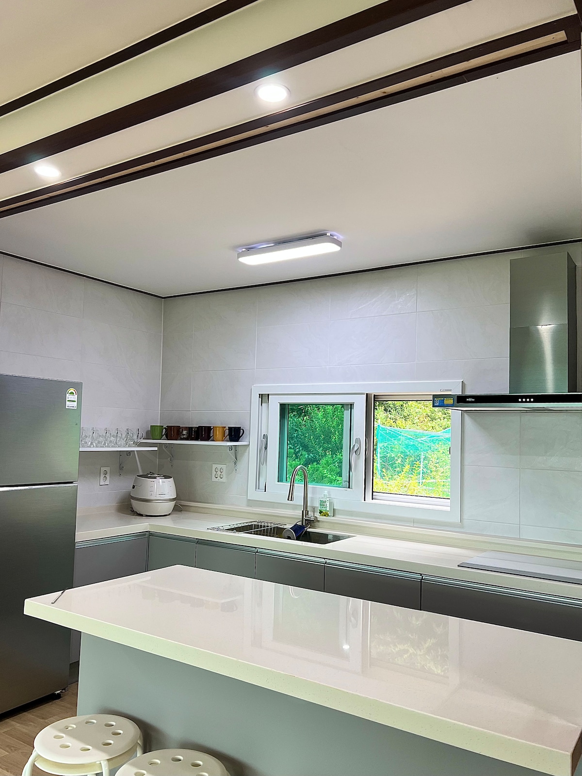 🎁 Terdapat lif 🎁 Penginapan kami merupakan ahli Cesco Membership, sebuah syarikat yang pakar dalam kuarantin dan haiwan perosak. 🎁 Pemasangan penulen air 🎁Barbeku dalaman (gril elektrik) disediakan. 🎁Tab mandi besar + gril elektrik disediakan sekali untuk 2 malam ※ Yuran berasingan 1) Yuran mandian ialah 40,000 won. 2) Kolam renang atas bumbung: 80,000 won untuk air sejuk dan 150,000 won untuk air panas 3) Pemanggang elektrik berharga 30,000 won