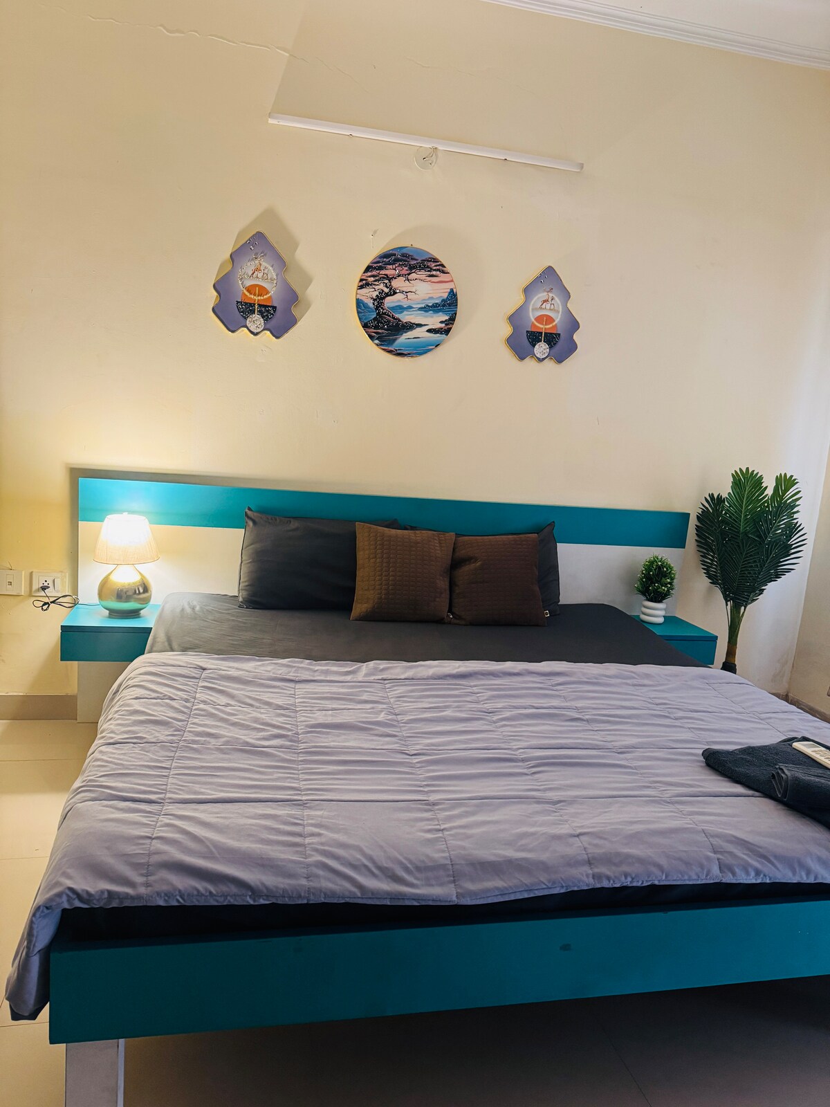 Apartmen 2 Bhk pertama yang memenuhi setiap syarat ✨ - 2 Bilik Tidur ( Bilik tidur utama, bilik tidur kedua) - 2 Katil King - Ruang tamu yang luas dengan susunan tempat duduk yang selesa - 2 bilik mandi ( 1 di setiap bilik tidur) - Dapur kecil (dengan semua keperluan asas memasak yang tersedia dan kemudahan yang disediakan, ia adalah tempat yang sesuai untuk menyediakan makanan kegemaran anda) - Kawasan Balkoni Berkongsi yang bersambung dengan apartmen yang boleh menjadi ruang yang sesuai untuk bersiar-siar pada waktu malam anda Tempah Sekarang!!