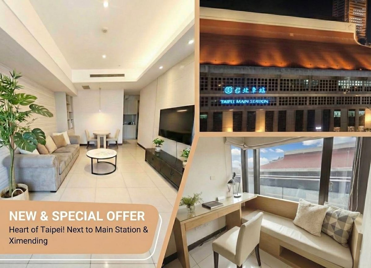 New! 眺望台北101電梯景觀2房。台北車站對面,近西門町夜市,機場捷運線。折扣優惠中!