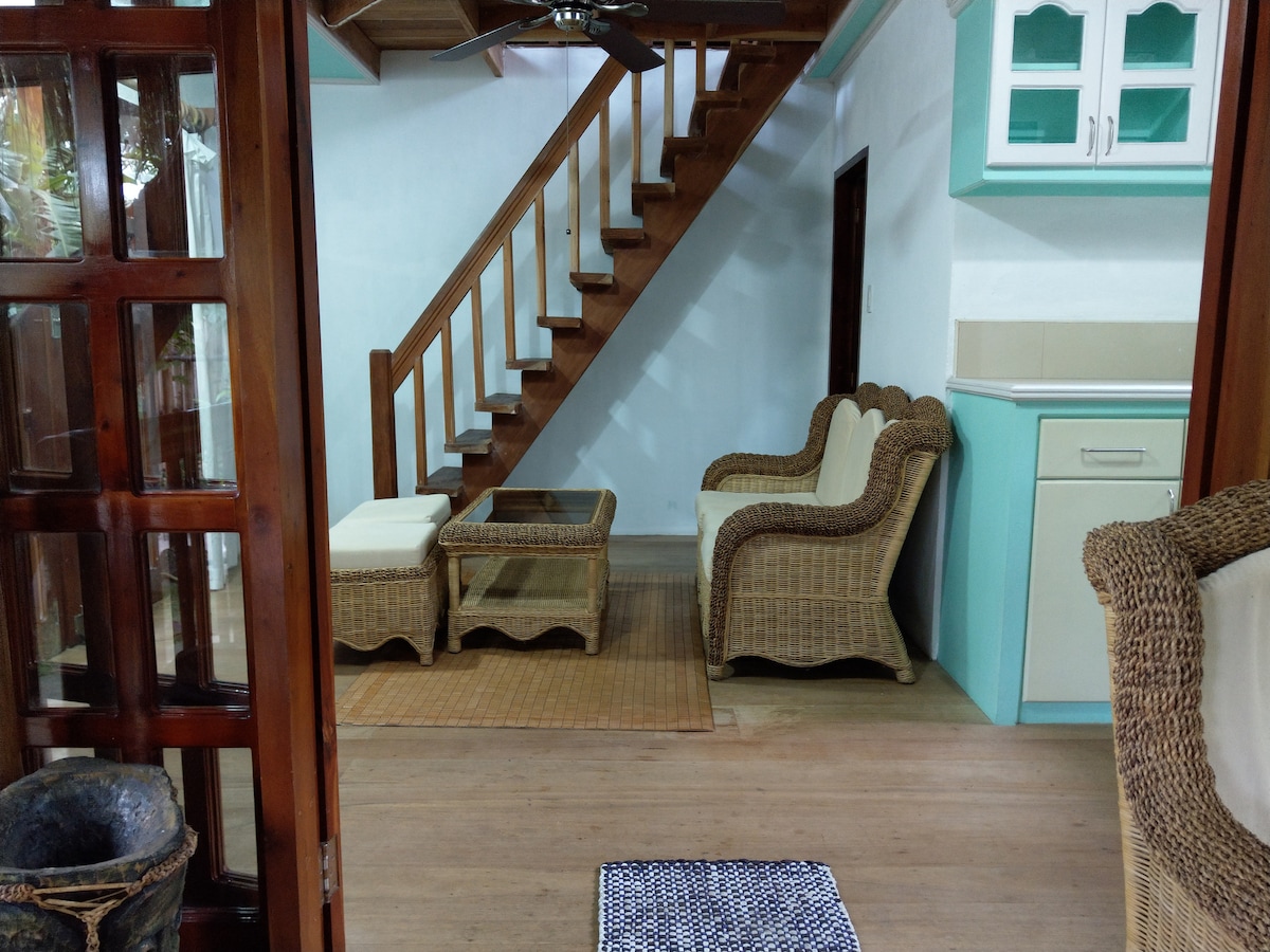 Kombinasi reka bentuk rumah asli dan moden, pencahayaan yang baik, pengudaraan dan sejuk. 3 minit (150m) berjalan kaki ke pantai pasir kelabu yang bersih dengan terumbu karang berwarna-warni yang hidup. Anda perlu memakai selipar kerana terdapat banyak batu. Kipas angin cukup selesa kerana terdapat banyak angin yang datang dari laut dan penginapan ini dikelilingi oleh pokok-pokok dan tumbuhan. Kira-kira 25 minit ulang alik ke bandar dengan jipney atau tricycle.