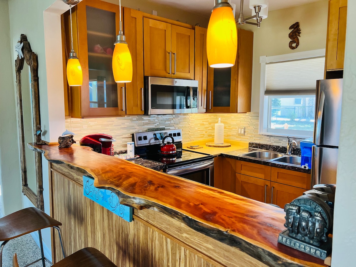 Nikmati penginapan FL anda di Rumah Tetamu yang bergaya, baru diubah suai dan terletak di tengah-tengah! Rumah Tetamu ini benar-benar terpisah dan peribadi daripada rumah utama - anda akan mendapat seluruh unit semasa penginapan anda. Permukaan kaunter kuarza, mesin basuh/pengering, katil queen, dan sofa tarik keluar dengan peralatan tempat tidur tambahan. Boleh memuatkan 4 orang dengan selesa! 9 minit ke pantai, 15 minit ke Daytona International Speedway, Lapangan Terbang, dan Tanger Outlets. 5 minit ke Padang Golf Riviera. Kedai runcit (Publix) dan taman tepi sungai/taman permainan berpagar berhampiran.