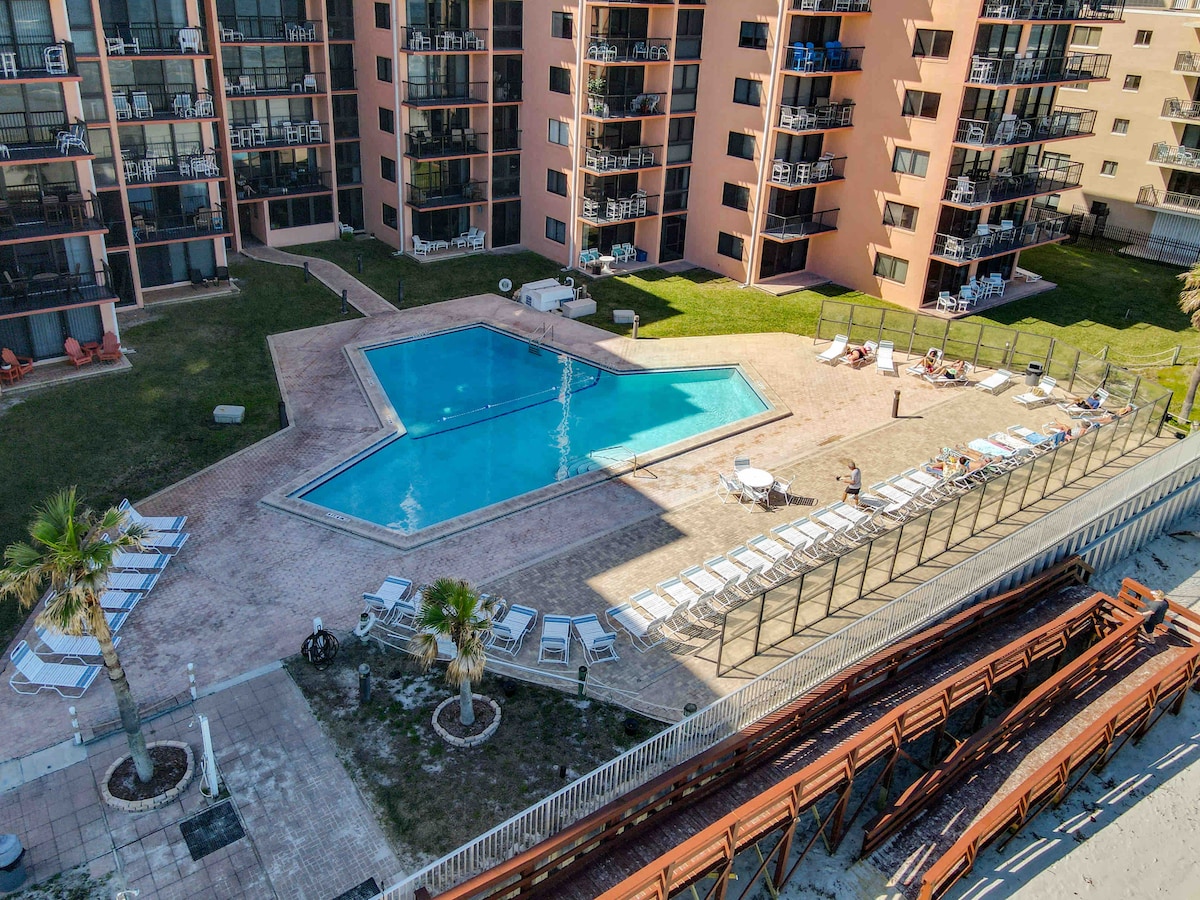 Ini ialah kondominium mewah tepi laut yang direka dan dihiasi secara profesional daripada bangunan terbaru di Daytona Beach. Kondominium Aruba. Gabungkan matahari terbit tepi laut yang menakjubkan dari balkoni anda dengan seni bina yang indah bangunan ini yang termasuk kolam gaya resort, tab mandi air panas, dan pusat kecergasan lengkap yang akan meninggalkan anda dengan kenangan yang menakjubkan semasa percutian tropika anda!