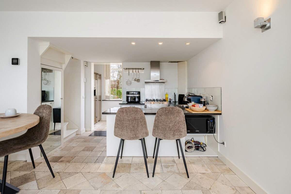 Keluarga dengan kanak-kanak kecil dialu-alukan dengan 6 orang! Rumah luar bandar yang bergaya dan tenang (tingkat bawah) dengan taman yang sangat besar kira-kira 1000 m2 terletak di tengah-tengah hati hijau yang tenang;Berhampiran A 'dam (25 min).Schiphol (20 minit), De Keukenhof (30 minit) The Hague (40 minit) Utrecht (25 minit),pantai (35 minit)) Juga tersedia: taman permainan, bilik tidur double, pendiangan dan teres (beranda). Sesuai untuk keluarga dan pencinta ketenangan dan alam semula jadi. Peralatan tempat tidur dan tuala bersih berkualiti tinggi.