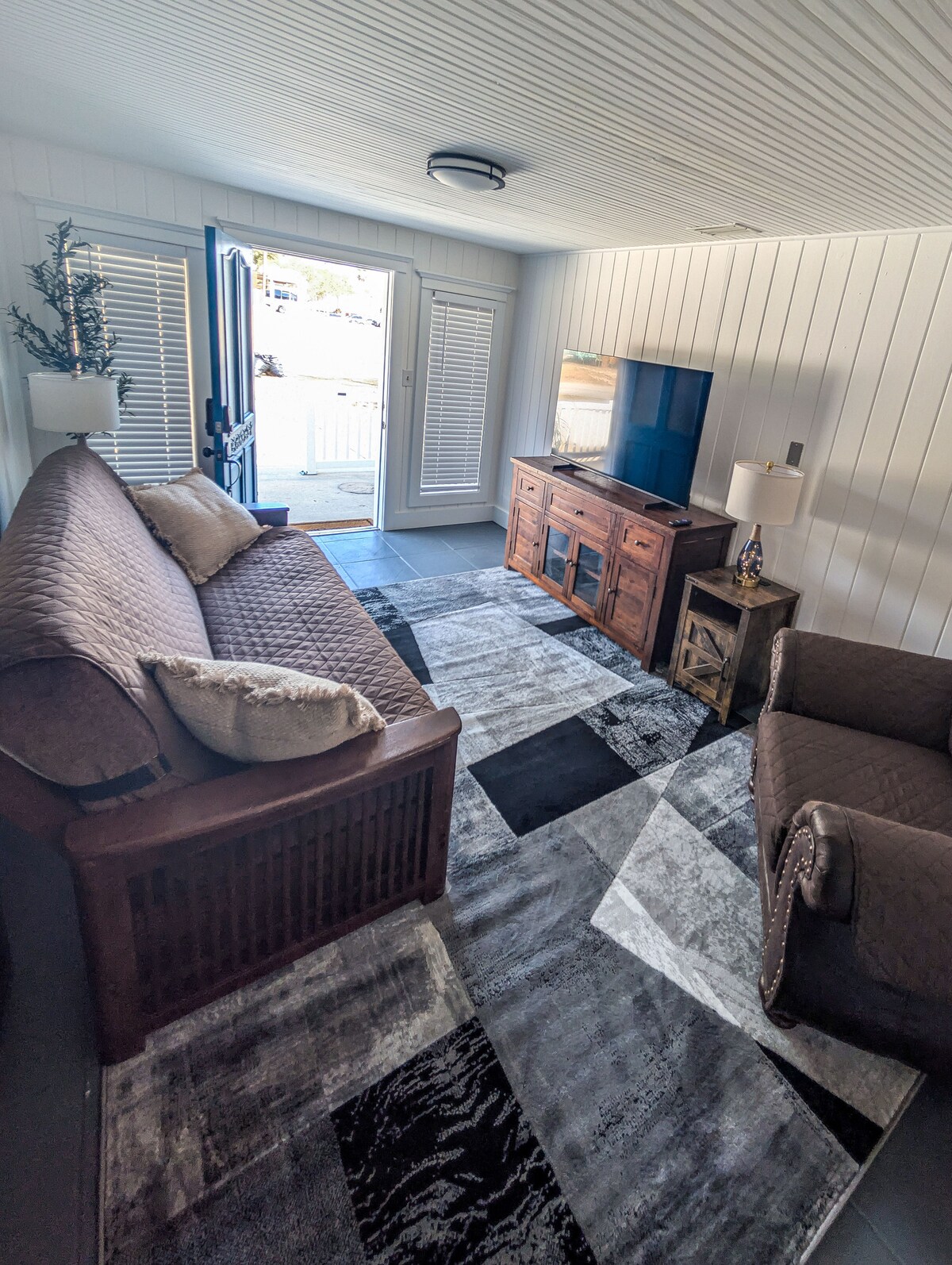 Escape to this remodeled boutique hideaway steps from downtown DeLand. Enjoy a bright, thoughtfully designed space with a cozy living area, fully equipped kitchen, plush queen bedrooms, and private outdoor nook for morning coffee or evening wine. Walk to restaurants, shops, and local events, then return to comfort, privacy, and effortless relaxation. Well‑trained pets welcome.