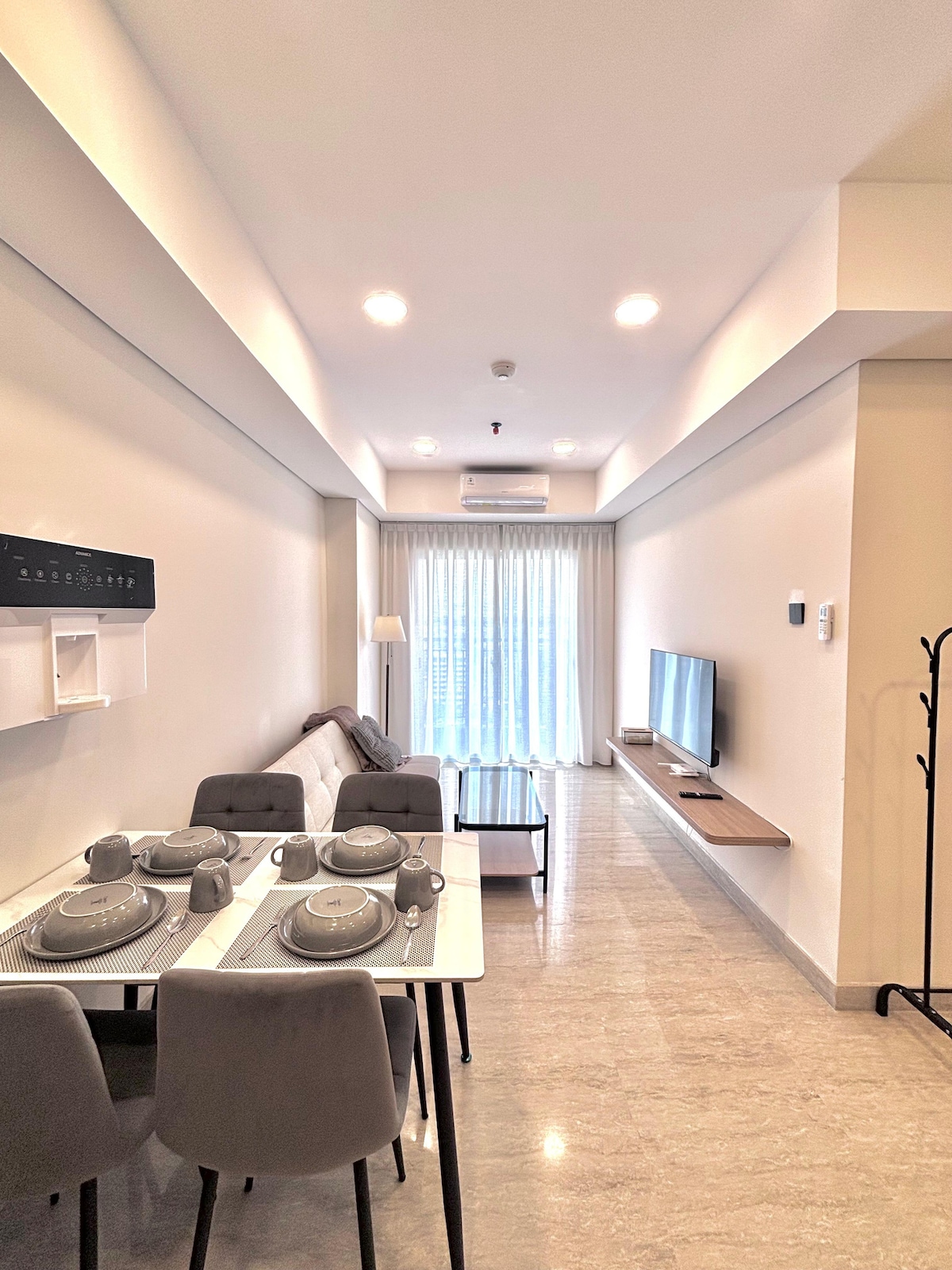 Apartmen Premium Empire Tower Podomoro. Nikmati apartmen yang direka dalam gaya kontemporari Muji - selesa, minimalis dan bersih. Menawarkan suasana yang tenang dan hangat untuk masa berkualiti bersama keluarga anda ❤ Bahagian dalaman menggabungkan fungsi dan estetika untuk memastikan penginapan yang benar-benar selesa. Terletak strategik di pusat bandar Medan, anda dan keluarga anda akan berada berhampiran dengan kawasan membeli-belah, makan dan perniagaan. Sesuai untuk mobiliti yang cekap. Akses terus ke kemudahan dan ke Deli Park Mall.