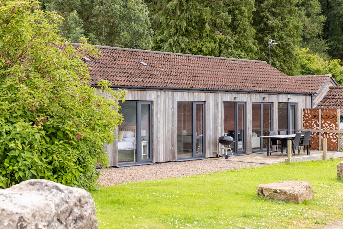 Kotej katering sendiri di kampung Wye Valley yang kecil dan tenang di bukit di atas Monmouth. Terletak di 6 ekar hutan dan taman tersembunyi. Bilik tidur besar dengan katil raja (60") & katil bujang yang selesa, ruang istirehat dengan pembakar log, TV & WiFi. Bilik spa besar yang menakjubkan dengan sauna, pancuran mandi, jakuzi & bilik tandas kecil. Dapur dengan dapur induksi, gril dan ketuhar kipas, ketuhar gelombang mikro, mesin basuh, pengering dan penyejuk beku peti sejuk, bilik mandi berasingan dengan tandas.