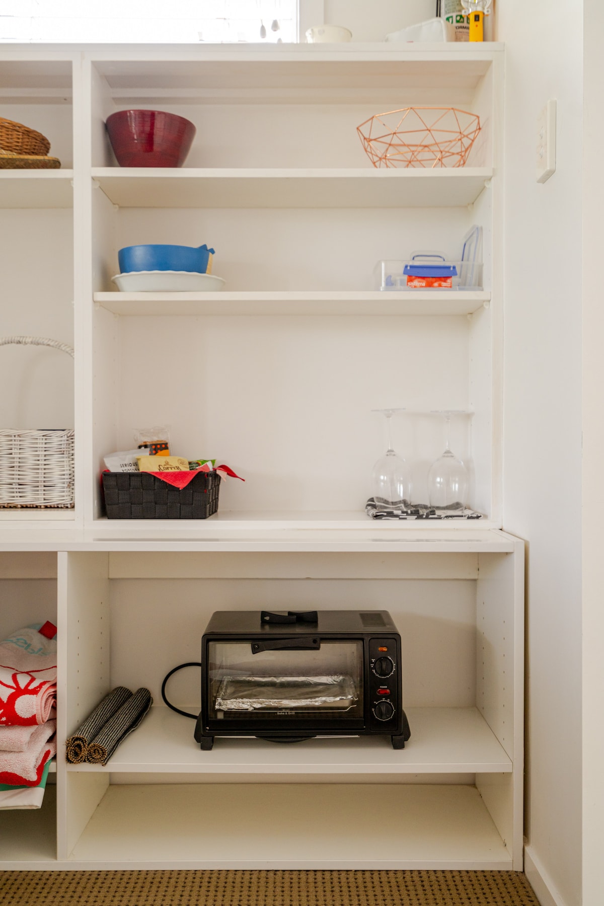 Enjoy a private outdoor space, the accommodation in the style of mid century, a living space with a queen bed and a bedroom with two king single beds, a private bathroom. The kitchenette has a microwave, electric jug, electric frypan, toaster and coffee plunger. There are plates/ utensils etc. Barbeque, hot plates and saucepans on request. Also the apartment is not suitable for mobile babies (a cot is available) nor children under the age of seven. A vehicle to get around is recommended.