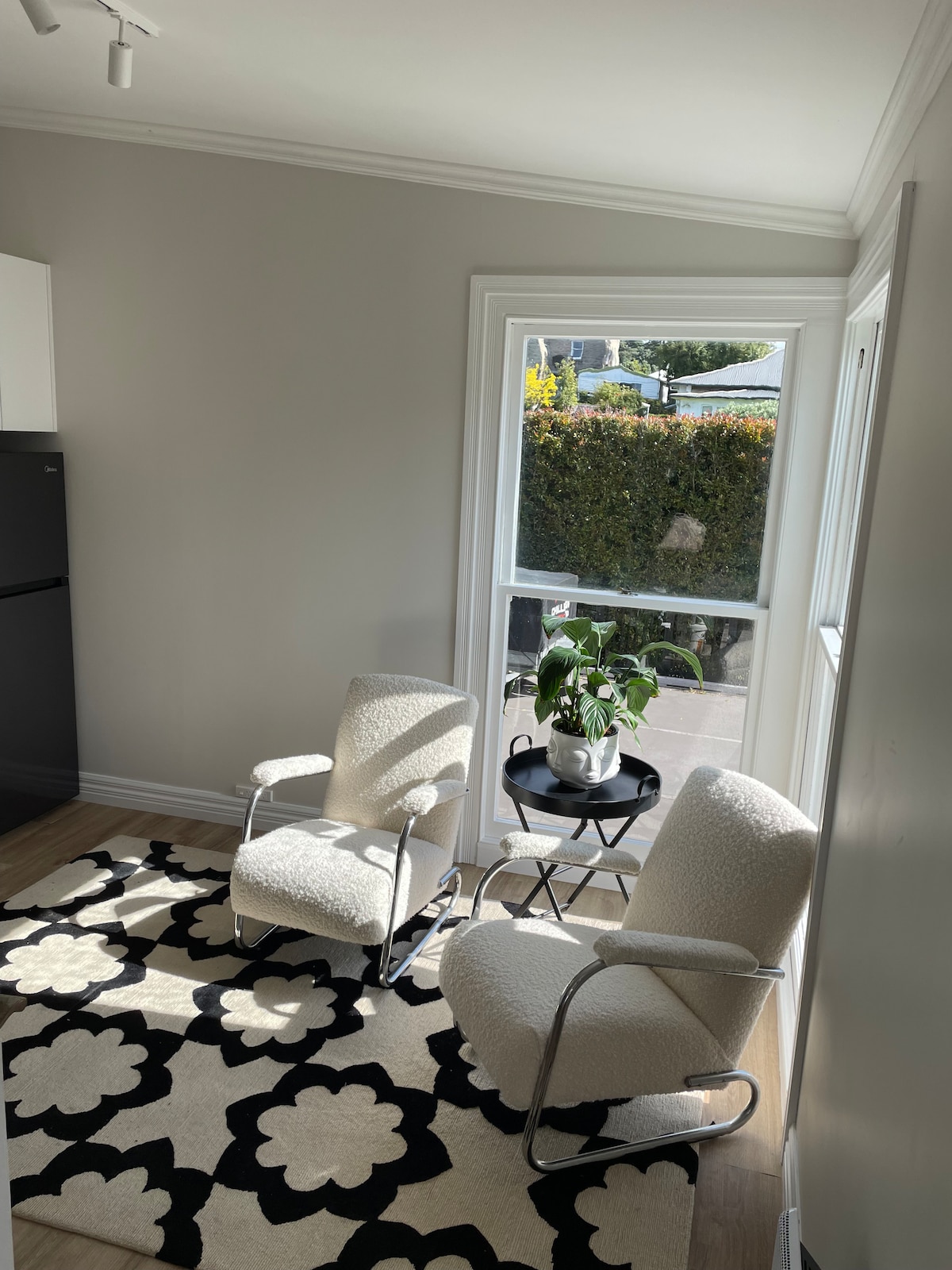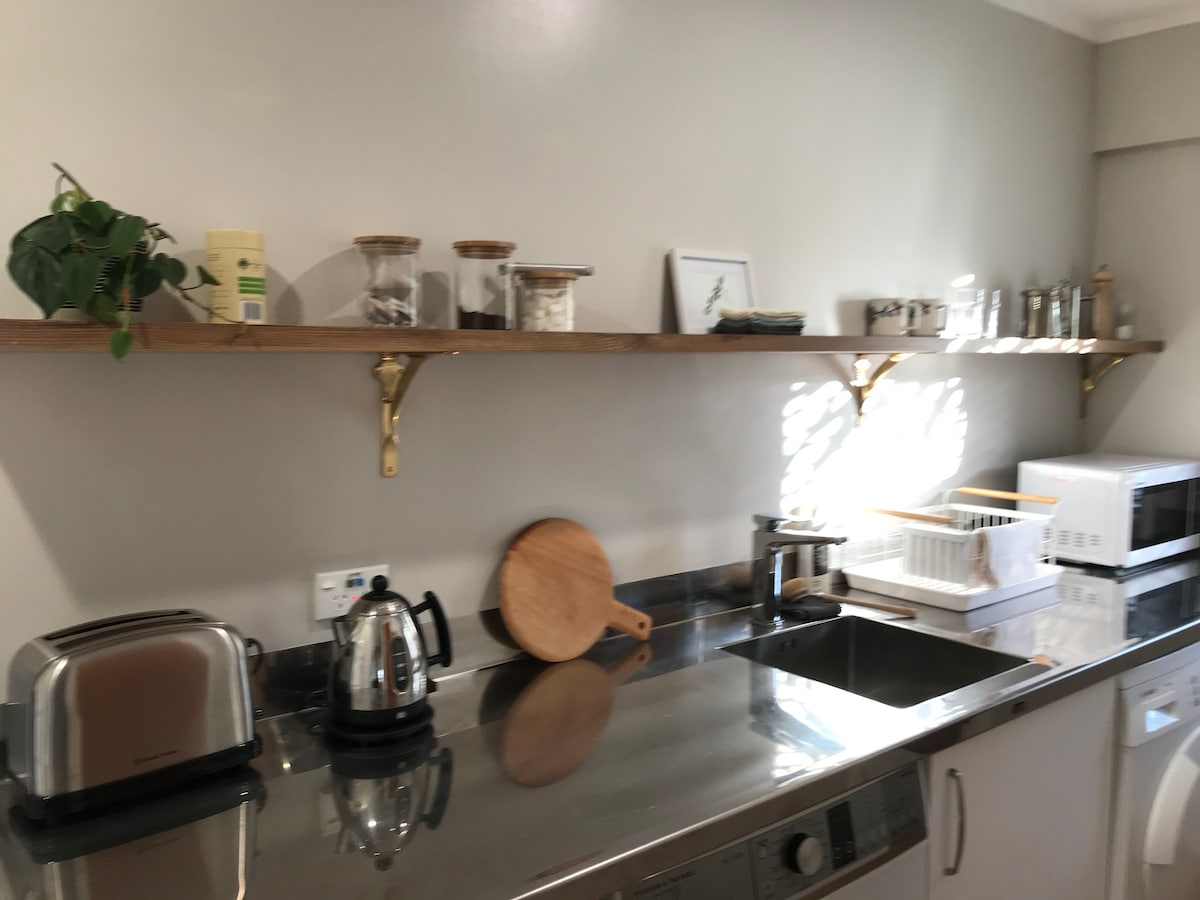 Terletak di Devonport yang bersejarah, ruang baru kami adalah sebahagian daripada banglo (matahari) yang menghadap utara 100+tahun dengan taman. Kami tiada kemudahan dapur/memasak di lokasi. 15 minit berjalan kaki ke kampung & 20+ kafe, pub & restoran, 2 minit lebih jauh ke feri & Auckland CBD 12 minit kemudian. Padang golf awam berjarak 5 minit berjalan kaki, 3 pantai 15 minit berjalan kaki. Ruang yang tenang ini mempunyai katil queen & di bilik kecil bersebelahan katil king single. Pintu masuk anda sendiri, bilik mandi, teh, pembuat kopi, peti sejuk, TV pintar internet laju & pemanas.