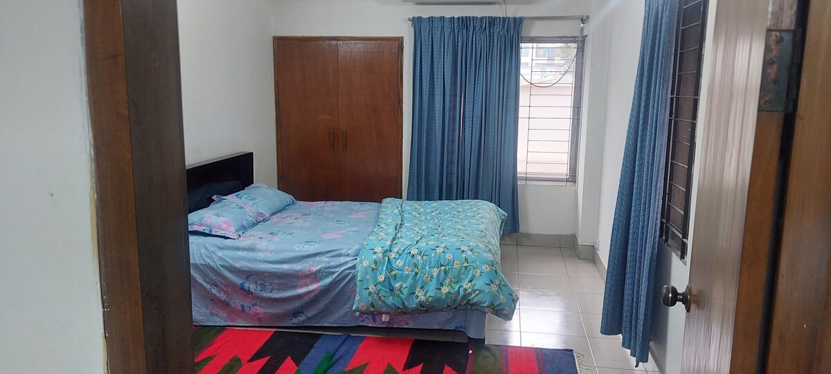 Penginapan persendirian di flat bergaya ini di Bashundhara. Tempah 1 bilik untuk 1 hingga 2 orang 2 bilik untuk 3 hingga 4 orang, 3 bilik untuk 5 hingga 6 orang Semua bilik tidur mempunyai katil bersaiz queen. Tidak berkongsi sama ada anda menempah 1 atau 2 bilik. Lokasi pusat di Bashundhara berhampiran dengan lapangan terbang, kedutaan di Baridhara dan Gulshan. Berhampiran hospital Evercare dan International Conventaion Centre Iccb. Hanya untuk pengembara keluarga atau perniagaan. Pasangan yang belum berkahwin tidak diterima. Tiada parti tetapi sambutan perhimpunan keluarga.