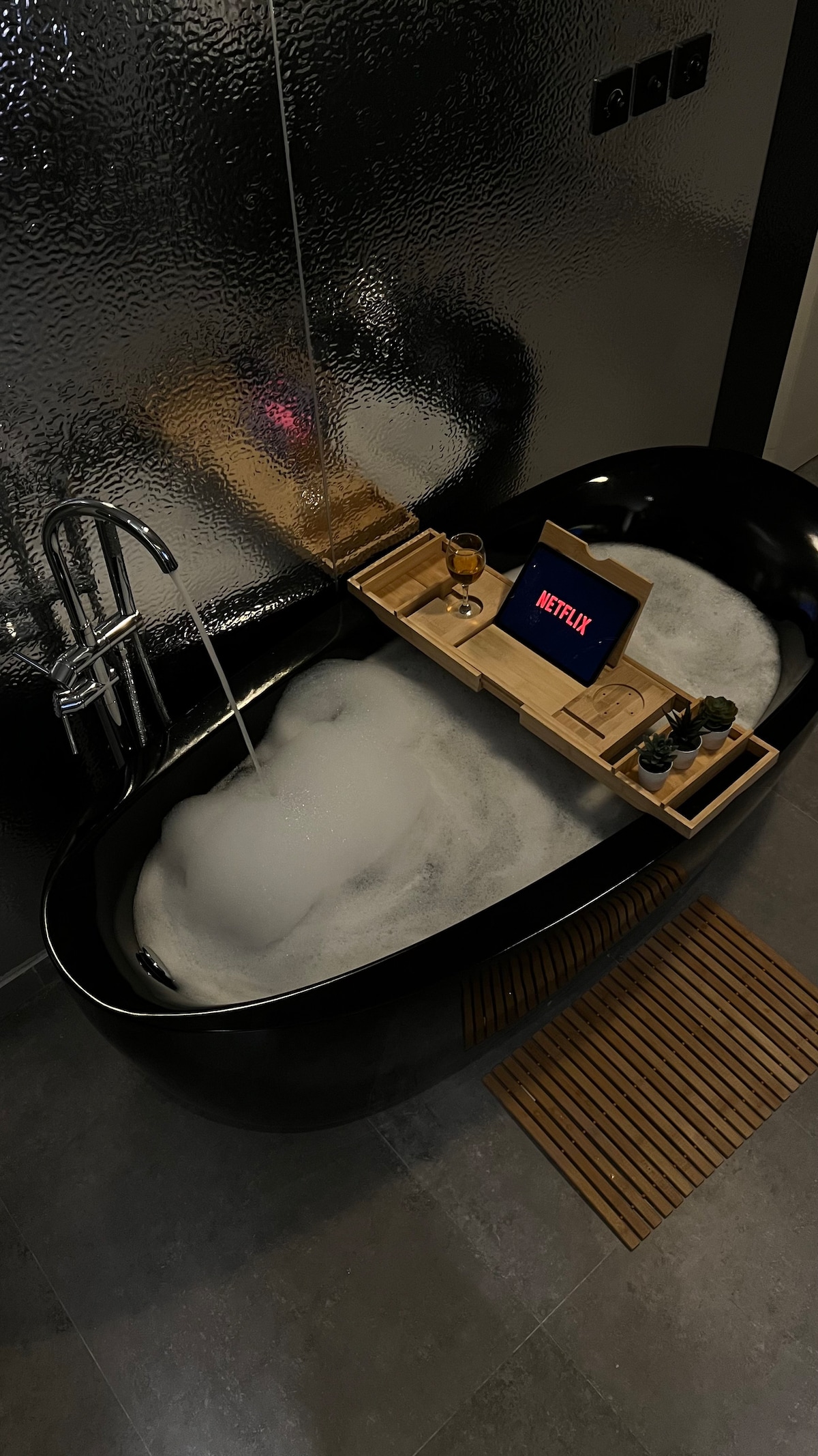 Bersantai di penginapan yang tenang dan bergaya ini dengan tab mandi, katil utama, skrin 75 inci dengan Netflix dan YouTube Premium, dapur lengkap, kemudahan hotel bersepadu, dan realiti berada bertentangan Mesk Walk di jalan yang diservis sepenuhnya.