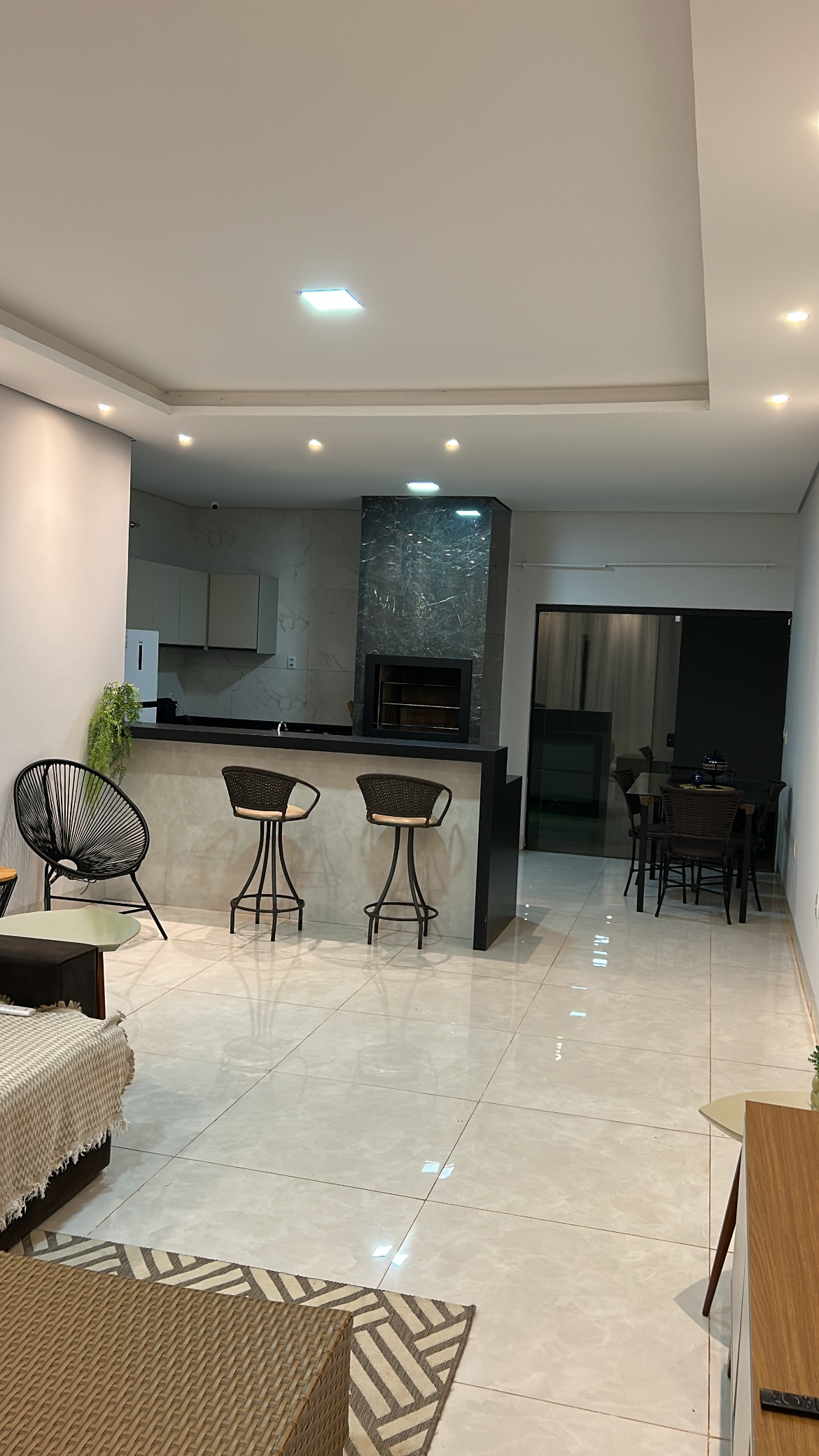 A casa tem muito conforto e lazer, área construída de 300 metros, toda arejada com ar condicionados nos quartos e na sala de televisão, à sala é composta por um sofá retrátil de 3 metros, Tv de 85 polegadas, ar-condicionado 18 mil btus. A cozinha é muito completa, com todos os utensílios, panelas, pratos, talheres, copos, xícaras, fogão, forno, Airfrayer. O Quintal todo gramado, espaço de 360 metros livre com a piscina de 6 metros.