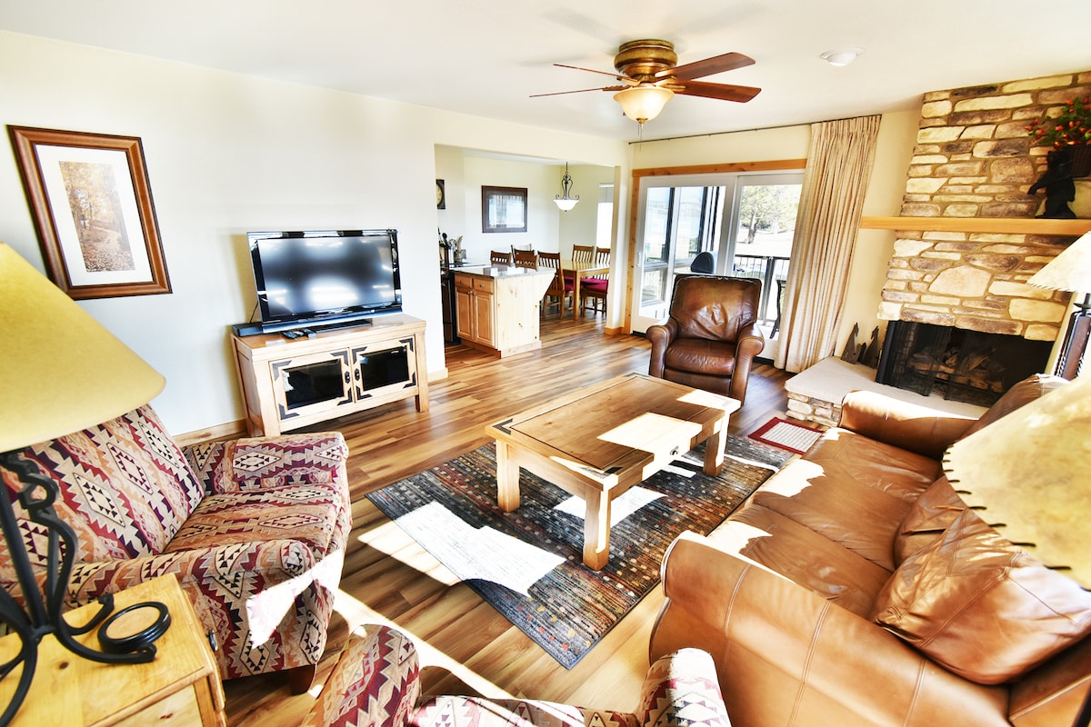 Kondominium 2 bilik tidur, 2 bilik mandi "mountain escape" kami mempunyai pintu patio kaca panorama dengan pemandangan yang tidak terhalang menghadap Tasik Dillon dan gunung-ganang di sekitarnya. Anda juga boleh melihat Dillon Marina dari patio, dengan bot layar berlabuh sepanjang musim panas. Dengan dapur yang baru diubahsuai, sofa selesa berhampiran pendiangan gas kami, tempat duduk meja untuk 6 orang dan tempat duduk bar sarapan untuk 3 orang. Anda dialu-alukan untuk menggunakan ruang garaj yang kami tetapkan, tempat letak kereta tambahan dan mempunyai storan ski dalam unit.