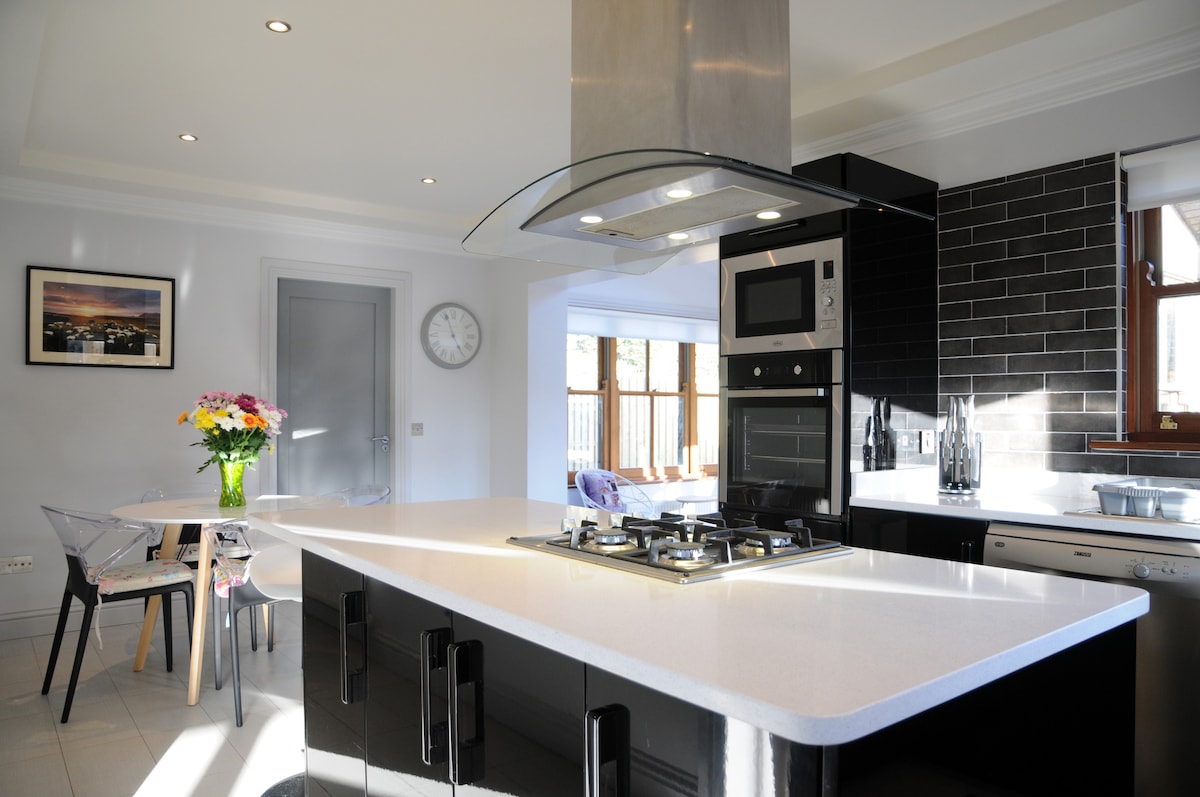Thoughtful touches make this trendy house feel just like home. Elegant double bedrooms. Views of Dingle Harbor from upstairs bedroom and tv room.. Contemporary spacious kitchen and dining room. Cozy and intimate living room to relax. Netflix for some timeout. A short stroll to Dingle town. Off-street private parking. Quiet and peaceful. Laundry facilities. High chair and full-size cot.The perfect location for both short and long stays.