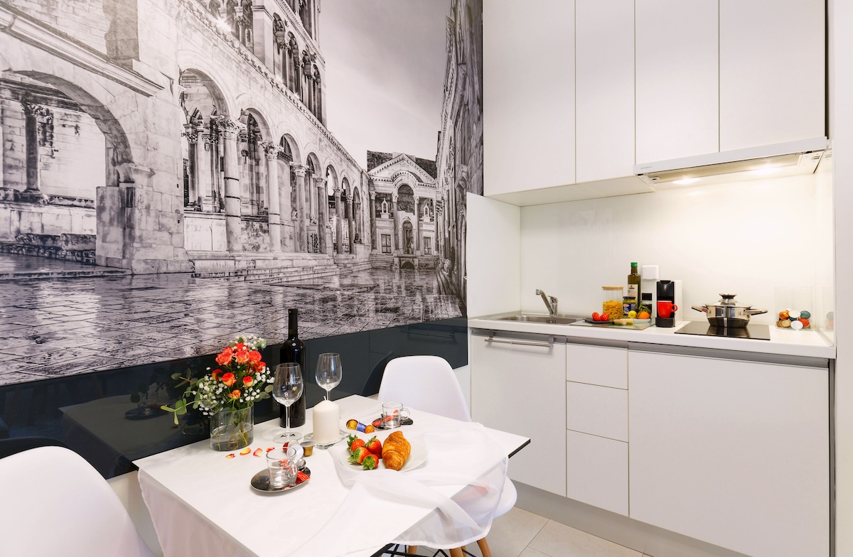 Bayangkan tidur di tengah-tengah istana purba yang dibina pada abad ke-4 tanpa perlu membeli tiket untuknya, menakjubkan bukan? Apartmen ini terletak di dalam istana Diocletian yang terkenal di bawah perlindungan UNESCO. Ia terdiri daripada dapur, ruang makan, tandas dan dua bilik tidur yang luas, satu mempunyai balkoni untuk mendengar ceramah lewat malam bandar yang indah ini. Tidak kira itu jika anda ingin berseronok di pantai dan berparti atau melawat lokasi bersejarah, semuanya hanya beberapa langkah jauhnya