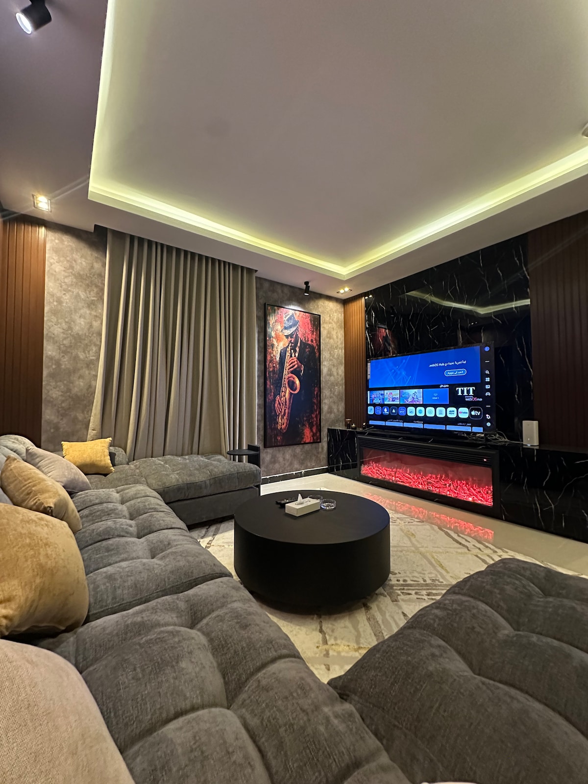 Penginapan🏠 Apartmen mewah, berkelas dan selesa dengan reka bentuk moden untuk keselesaan tetamu Lokasi📍 Lokasi ini sesuai dan berada di lokasi strategik di tengah-tengah musim Riyadh dan sangat dekat dengan mercu tanda paling penting di bandar Riyadh di (kawasan Al-Aqeeq) Di mana: - Hanya (5)minit dari "(Boulevard) dan (Kingdom Arena)" - Juga (9)minit dari "Pusat Kewangan King Abdullah" - Dan (10)minit dari "(Wonder Garden)dan(Youwok)" - Dan (10)minit dari"Riyadh Park Mall" Kelebihan utama: 💫 * Kemasukan pintar * Skrin Netflix Smart * Tempat letak kereta dalaman * Internet * Peti sejuk * Ketuhar gelombang mikro * Sudut kopi dan teh * Tingkat bawah tanah