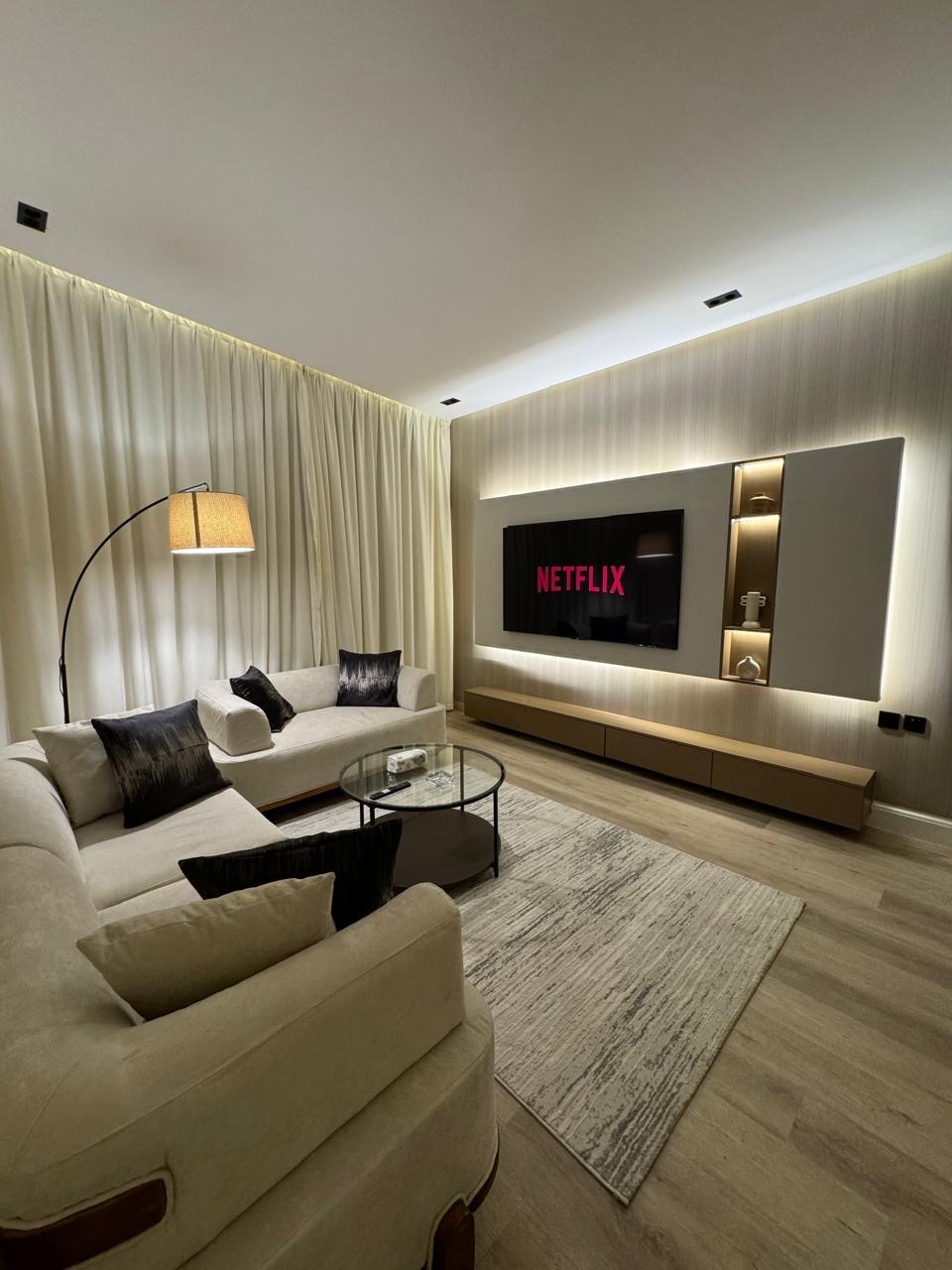 Apartmen 1 bilik tidur moden dan elegan di Al Malqa, hanya 10 minit dari Boulevard Riyadh City, Boulevard World & Kingdom Arena, dan 8 minit dari Solitaire Mall. Nikmati keselesaan aras hotel dengan ruang tamu yang selesa, bar kopi Nespresso, dapur penuh, TV pintar, katil bersaiz king, katil bayi, katil boleh lipat, dan daftar masuk sendiri. Snek & minuman percuma, Wi-Fi pantas, penyaman udara, tempat letak kenderaan persendirian, dan akses mudah ke perhentian bas berhampiran yang menghubungkan ke Metro Riyadh