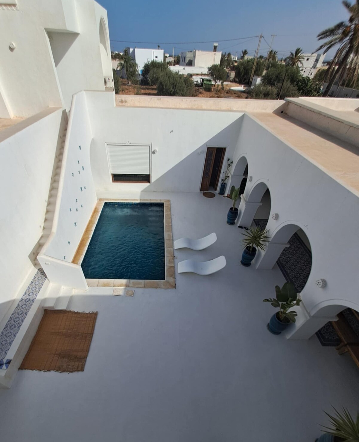 Rumah desa yang tenang di Djerba, sesuai untuk mengalami pulau ini secara berbeza. Di sini, tiada pelancongan besar-besaran: tenang, tulen dan bebas. Dua bilik tidur, ruang tamu dengan dapur kecil dan kehidupan ringkas mengikut rentak tempatan. Pasar raya dalam jarak berjalan kaki, Houmt Souk dan Djerbahood berdekatan. Kereta disyorkan tetapi teksi boleh. Makanan dan sarapan atas permintaan. Dihoskan oleh pasangan Franco-Djerbian, untuk tip tempatan yang ikhlas dan pengalaman yang benar-benar berbeza.