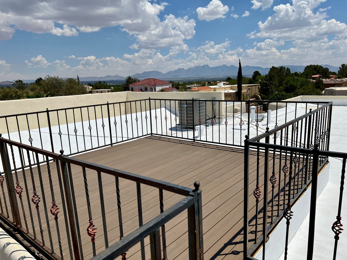 Kediaman Moden Mewah ini dibuat untuk disesuaikan dengan semua tetamu! Sama ada anda mencari percutian hujung minggu atau tempat untuk bekerja dan bermain, kediaman ini mempunyai segala-galanya untuk ditawarkan di Las Cruces yang indah, NM. Terletak di kejiranan baru berhampiran Red Hawk Golf Course dan beberapa taman mesra keluarga. Tetamu boleh berehat dengan tenang di salah satu daripada 4 bilik tidur dan menikmati kemudahan seperti gril luar, ruang tamu luar, permainan halaman, permainan papan, dan kebanyakan barangan dapur. Termasuk Internet berkelajuan tinggi dan SmartTV.